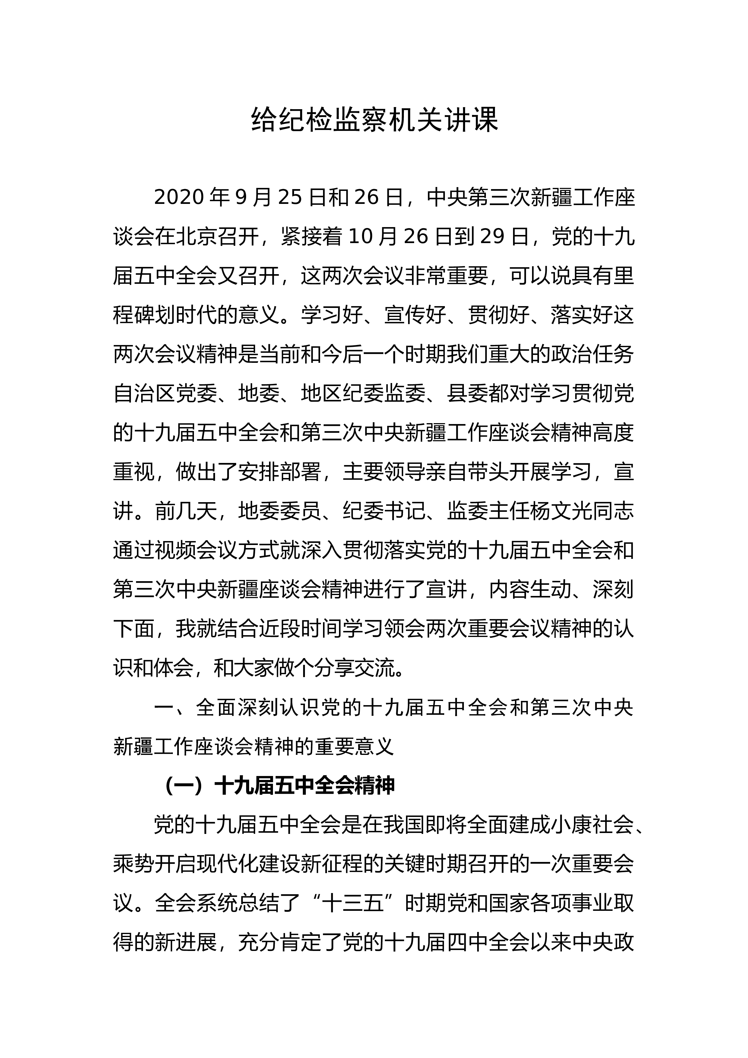 【党课讲稿】给纪检监察机关讲课---十九届五中全会和第三次中央新疆工作座谈会