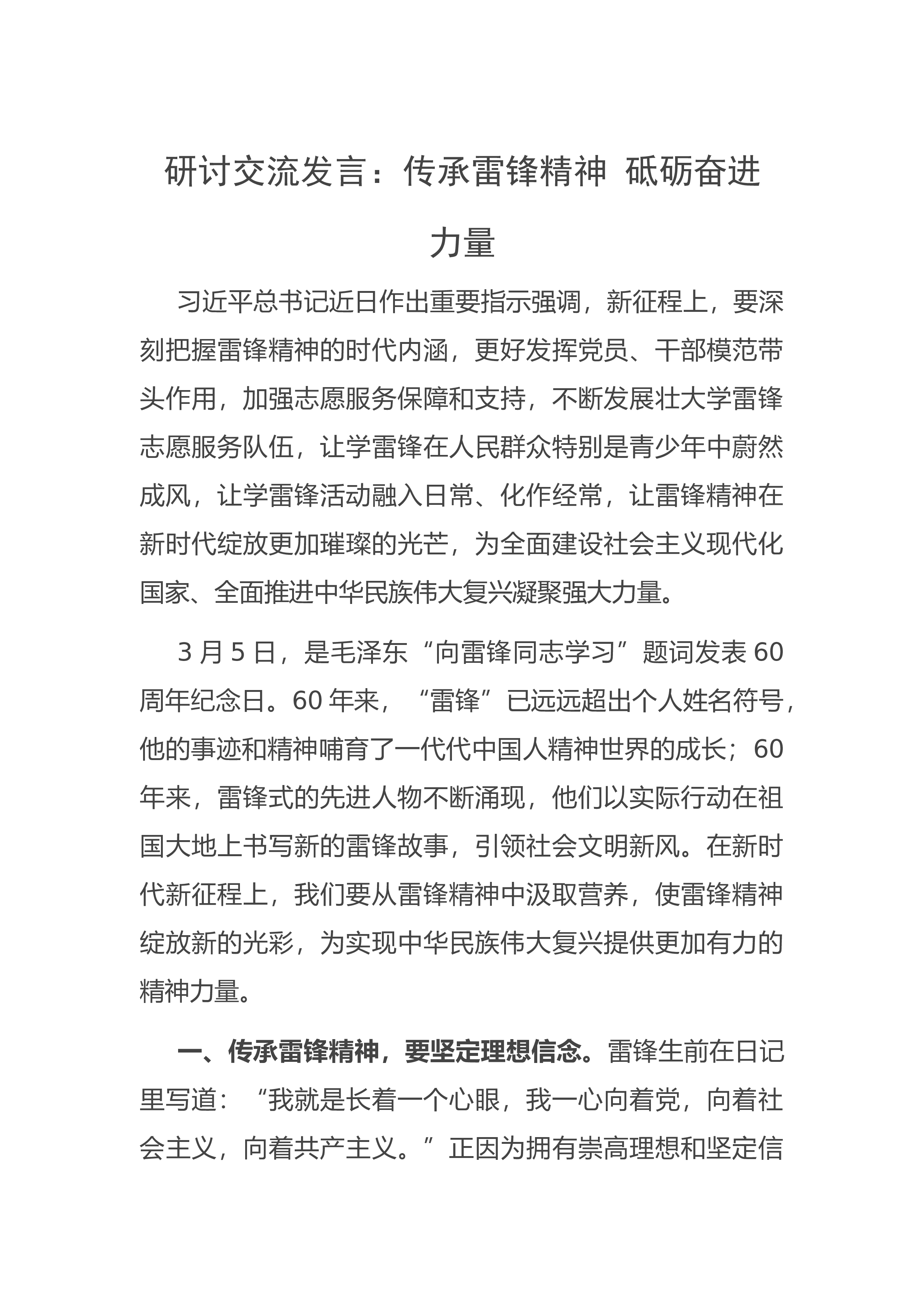 【研讨发言】雷锋精神主题发言材料汇编(10篇)