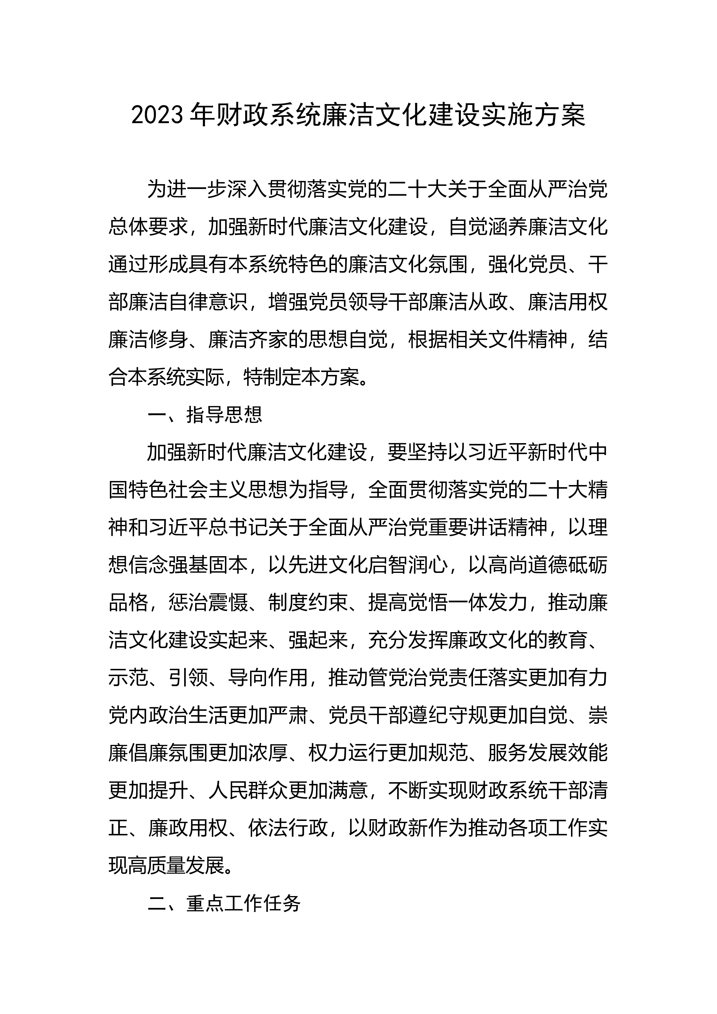【工作方案】2023年财政系统廉洁文化建设实施方案