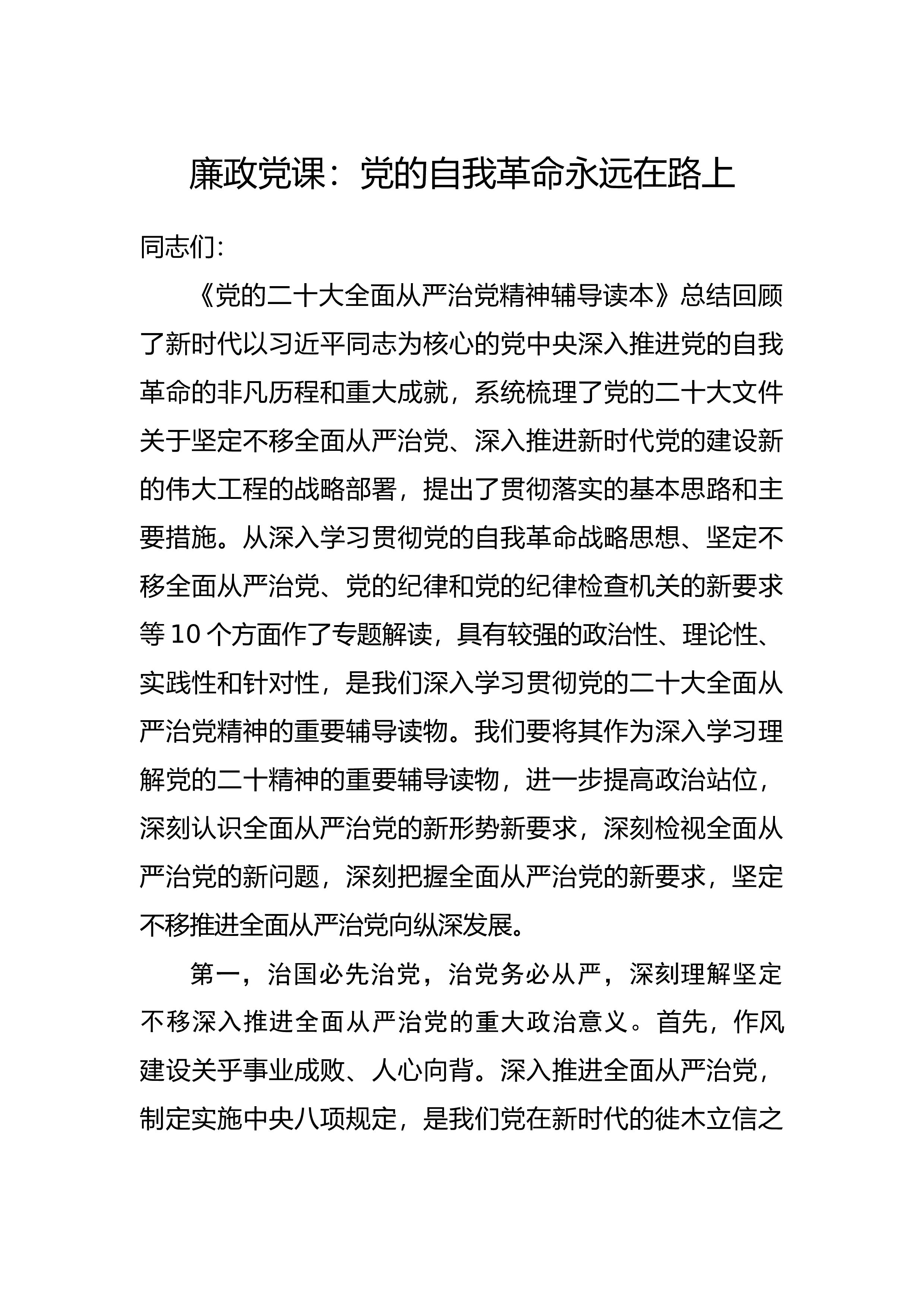 :党的自我革命永远在路上同志们:《党的二十大全面从严治党精神辅导读本》总结回顾了新时代以习近平同志为核心的党中央深入推进党的自我革命的非凡历程和重大成就,系统梳理了党的二十大文件关于坚定不移全面从严治党、深入推进新时代党的建设新的伟大工程的战略部署,提出了贯彻落实的基本思路和主要措施。从深入学习贯彻党的自我革命战略思想、坚定不移全面从严治党、党的纪律和党的纪律检查机关的新要求等10个方面作了专题解读,具有较强的政治性、理论性、实践性和针对性,是我们深入学习贯彻党的二十大全面从严治党精神的重要辅导读物。我们要将其作为深入学习理解党的二十精神的重要辅导读物,进一步提高政治站位,深刻认识全面...