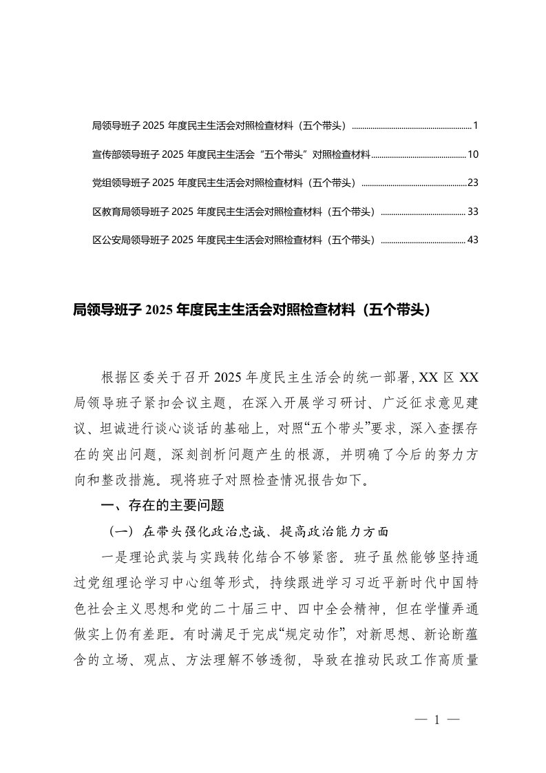 2025年度民主生活会对照检查材料五个带头民主生活会,对照检查材料,对照检查,五个带头,
