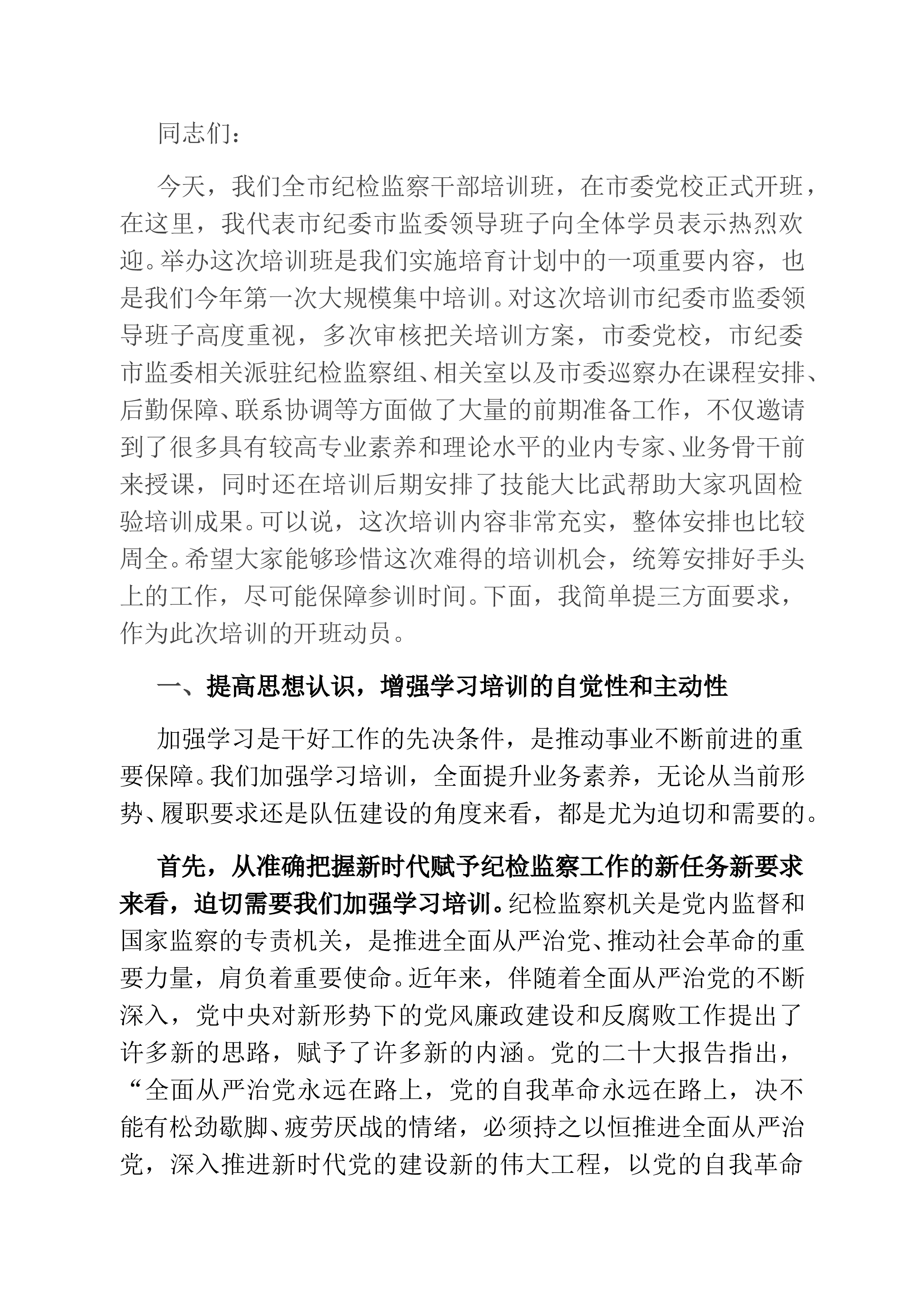 同志们:今天,我们全市纪检监察干部培训班,在市委党校正式开班,在这里,我代表市纪委市监委