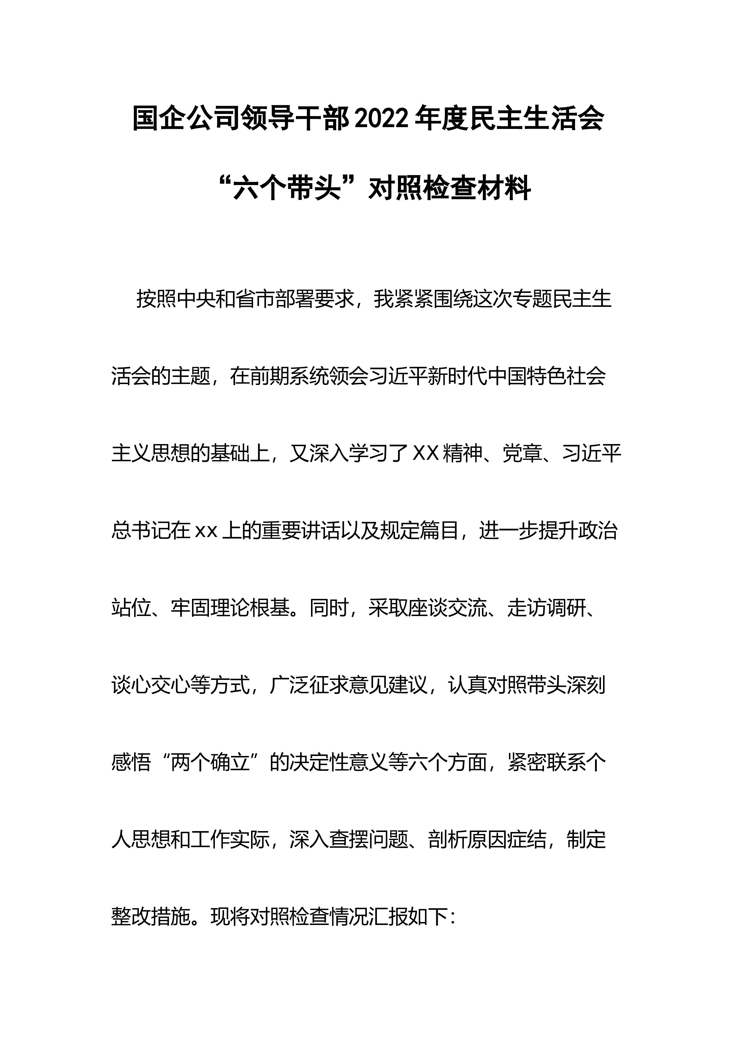 【国资国企】国企公司领导干部2022年度民主生活会“