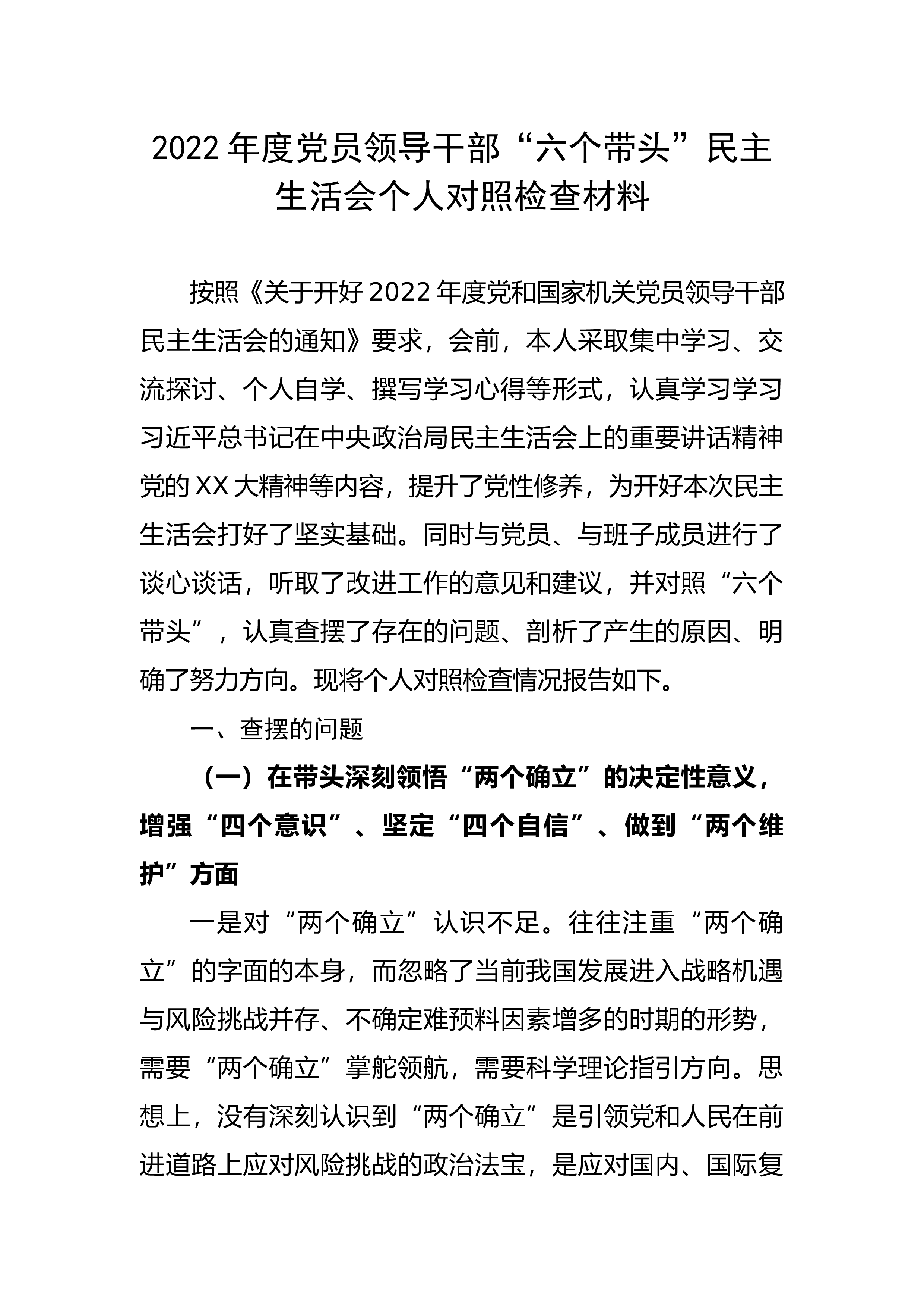 ”民主生活会个人对照检查材料按照《关于开好2022年度党和国家机关党员领导干部民主生活会的通知》要求,会前,本人采取集中学习、交流探讨、个人自学、撰写学习心得等形式,认真学习学习习近平总书记在中央政治局民主生活会上的重要讲话精神党的XX大精神等内容,提升了党性修养,为开好本次民主生活会打好了坚实基础。同时与党员、与班子成员进行了谈心谈话,听取了改进工作的意见和建议,并对照“