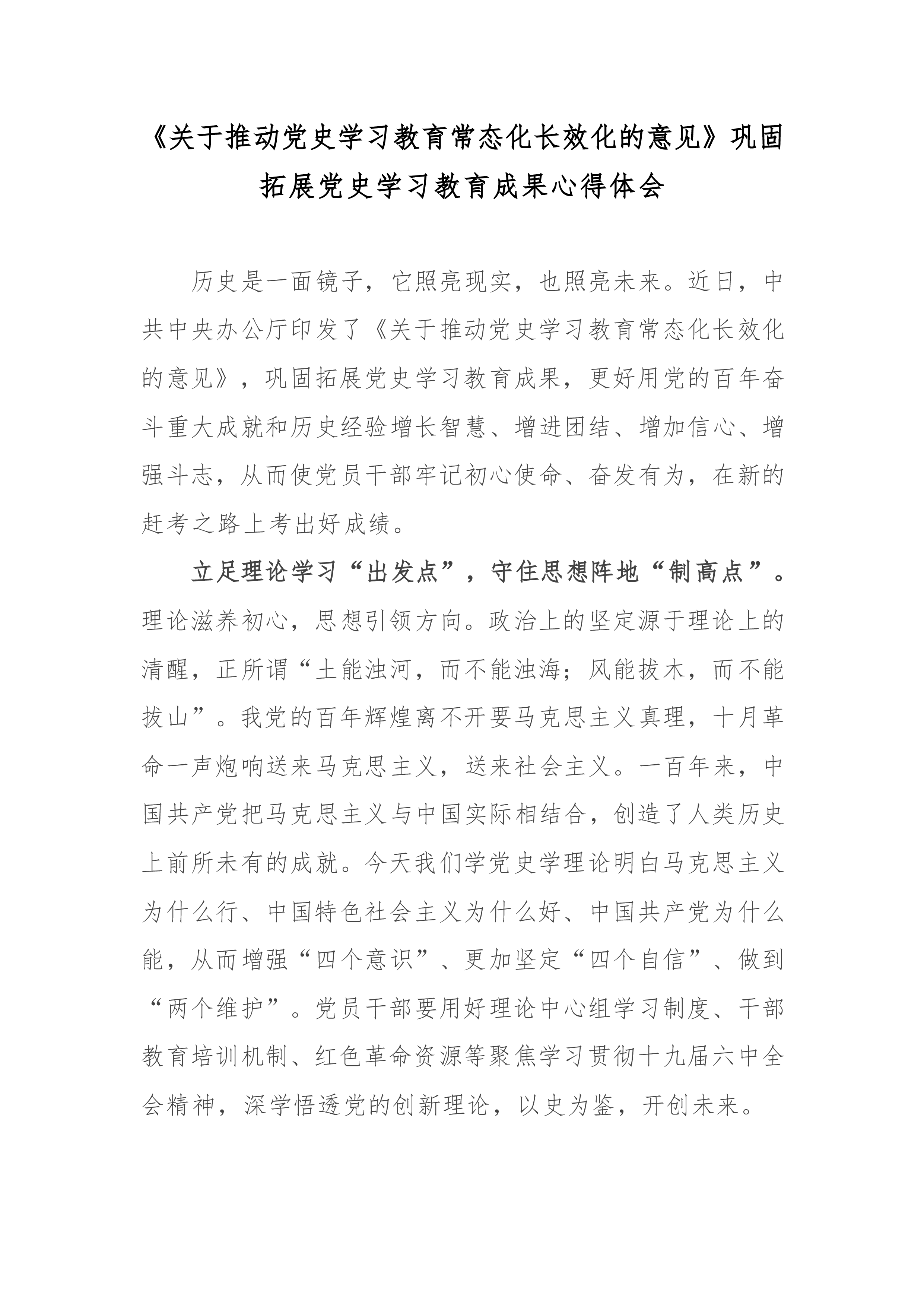 关于推动党史学习教育常态化长效化的意见巩固拓展党史学习教育成果心得体会2篇