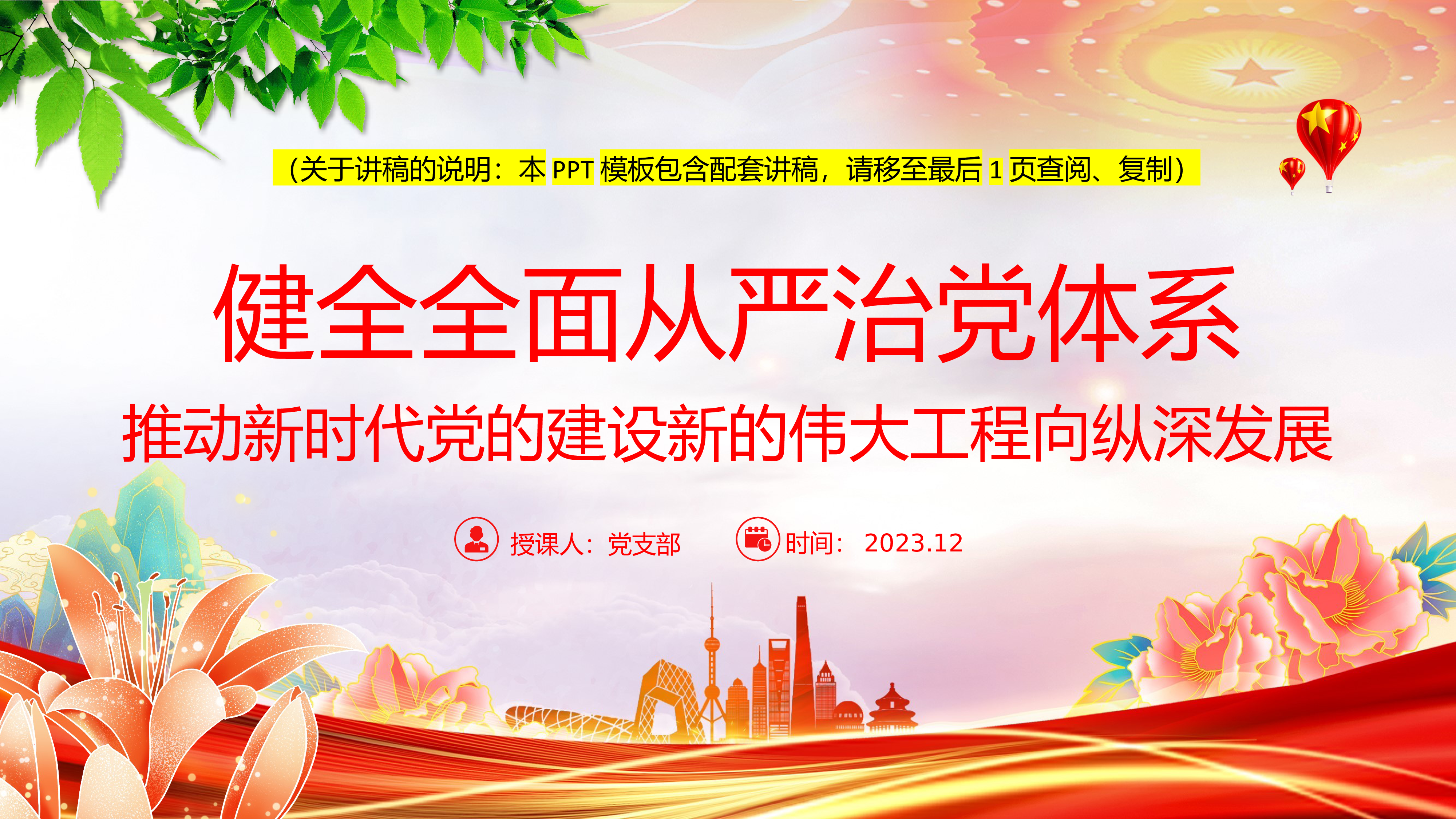 2024微党课健全全面从严治党体系党课ppt模板(带内容)推动新时代党的建设新的伟大工程向纵深发展党建课件