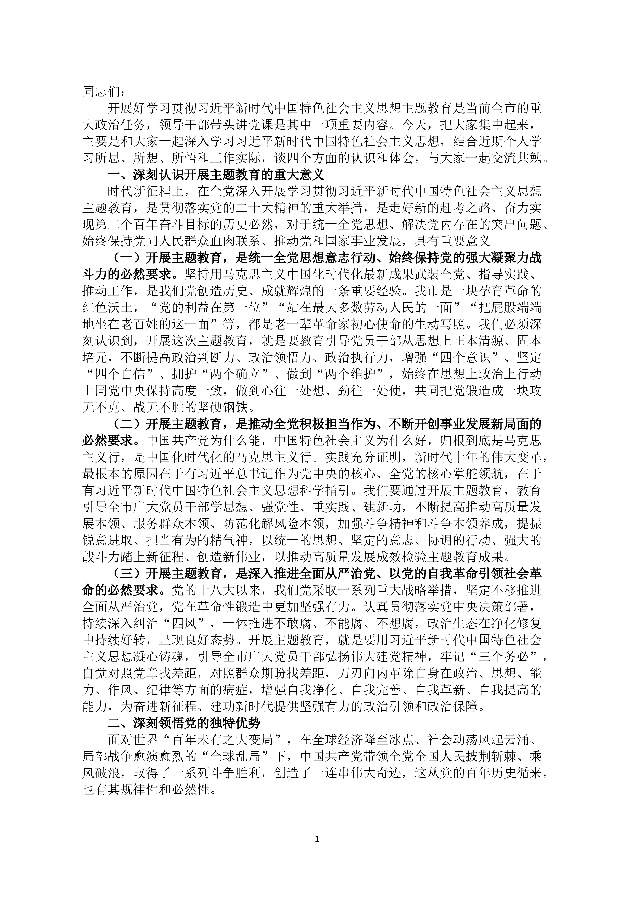座谈发言:展现新担当实现新作为在全党深入开展学习贯彻习近平新时代中国特色社会主义思想主T教育,是贯彻落实党的二十大精神的重大举措,对于统一全党思想、解决党内存在的突出问题、始终保持党同人民群众血肉联系、推动党和国家事业发展,具有十分重要的意义。卫生健康工作是重大民生工程,也是实现中华民族伟大复兴的关键支撑。作为卫生健康系统青年干部,要坚持不懈用习近平新时代中国特色社会主义思想凝心铸魂,以高度的政治自觉、思想自觉和行动自觉锐意进取、攻坚克难,奋力谱写**卫生健康高质量发展新篇章。一、要坚定理想信念,坚持以学铸魂,做有志青年习近平总书记强调:“以学铸魂,就是要做好学习贯彻新时代中国特色社会主义思想...