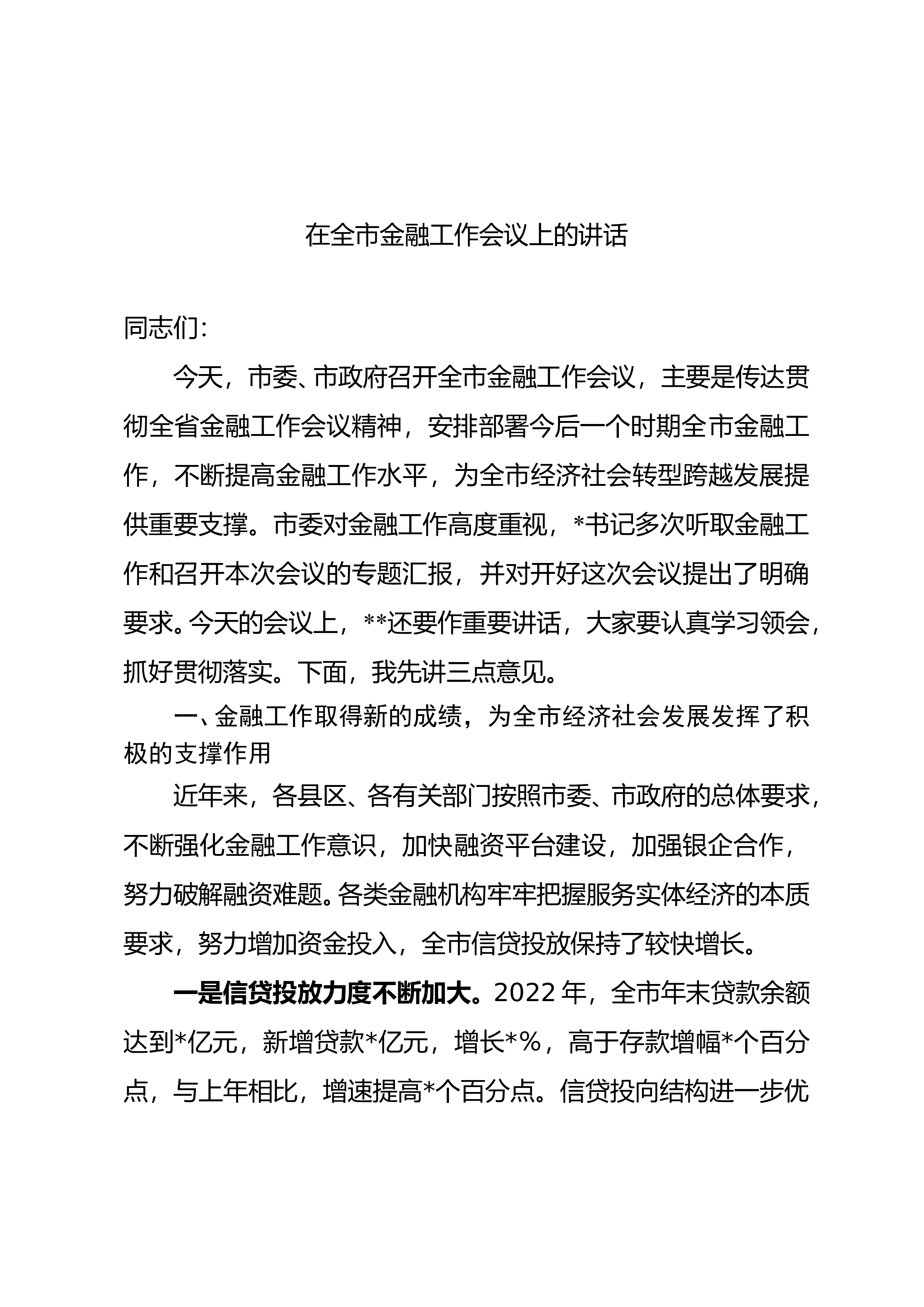 在全市文化产业大会上的讲话刚才,XX同志通报表扬了XX年文化产业发展工作先进单位;市委、市政府与各县(市、区)签订了《XX年文化产业发展目标责任书》;XX同志总结了XX年全市文化产业发展工作,安排部署了XX年文化产业重点工作;XX两位同志作了很好的表态发言;XX市长全面总结了去年文化产业发展成就,对今年文化产业发展重点进行了安排部署,讲话全面具体,我完全赞成和同意,希望各级各部门认真学习,全面贯彻,抓好落实。下面,我再强调三个方面的意见。一、认清当前形势,深化对发展文化产业重要性的认识文化产业是国民经济的重要组成部分,是最具潜力、最具优势的朝阳产业、绿色产业、低碳产业。今年2月,省委、省政府召...