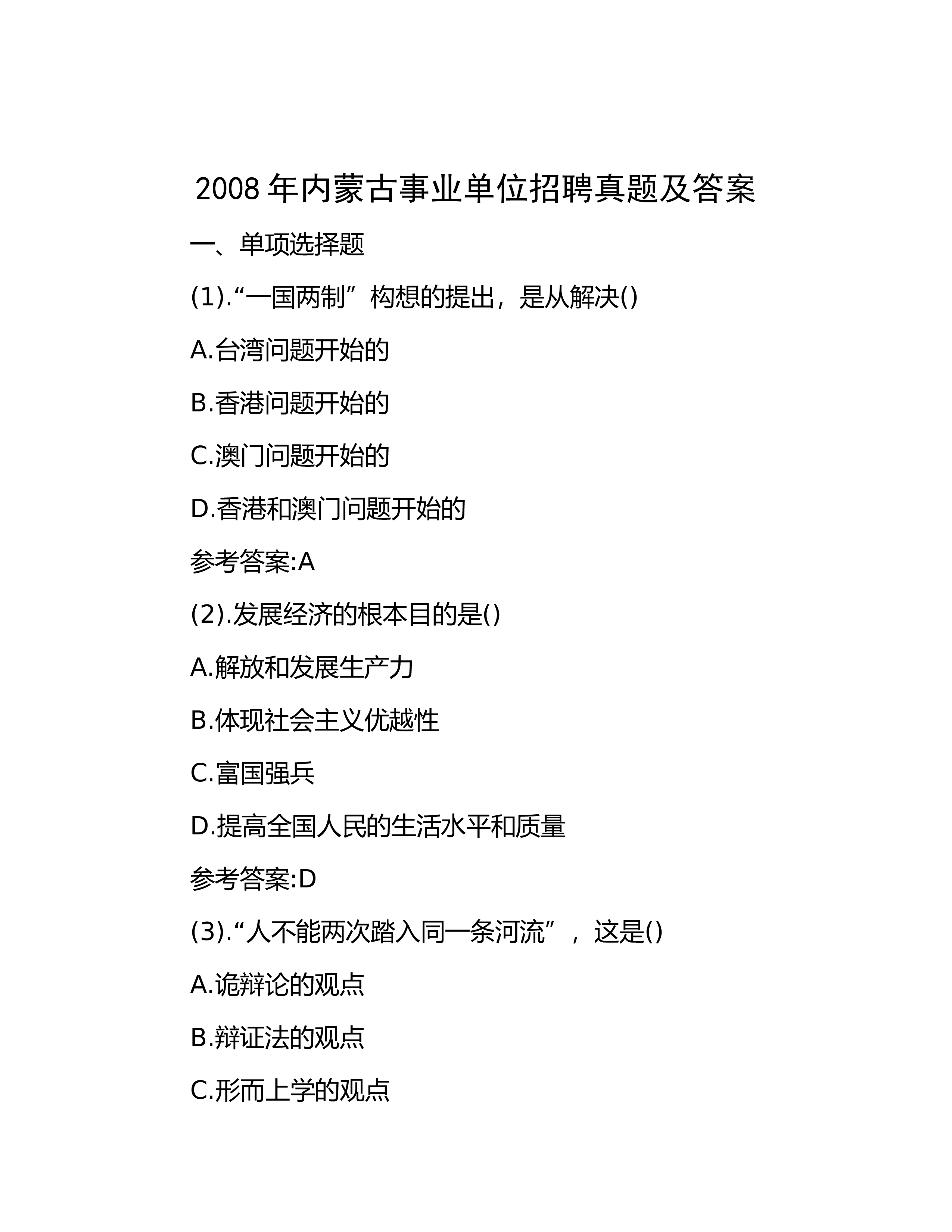 2008年山东省烟台市事业单位招聘真题及答案一.单项选择1、《共产党宣言》是科学社会主义第一个纲领性的文献。它的发表标志着马克思主义的诞生。《共产党宣言》被译成一二百种文字,出版1000多次。在人类文明史上有过许多传世名著,但没有哪一部能像《共产党宣言》这样牵动全世界最广大人民的心魄。2008年是纪念《共产党宣言》公开发表()A、130年B、150年C、160年D、180年2、2007年,我国农业增产增效取得了重大成绩。粮食总产超过10000亿斤,达到10030亿斤,连续4年粮食面积、总产、单产“三增”。这在新中国农业发展史上是首次。农民增收渠道呈现多元化,工资性收入成为农民增收的重要来源。农...