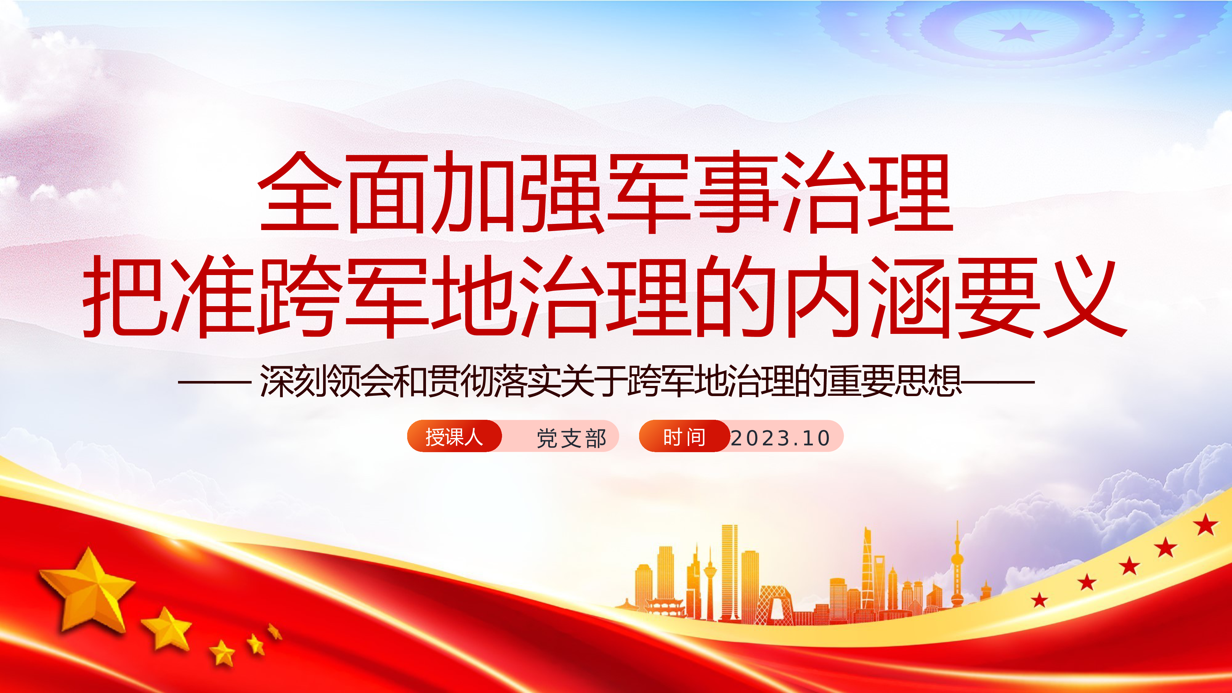 2024微党课2023全面加强军事治理党课ppt模板带内容把准跨军地治理的内涵要义ppt模板党课