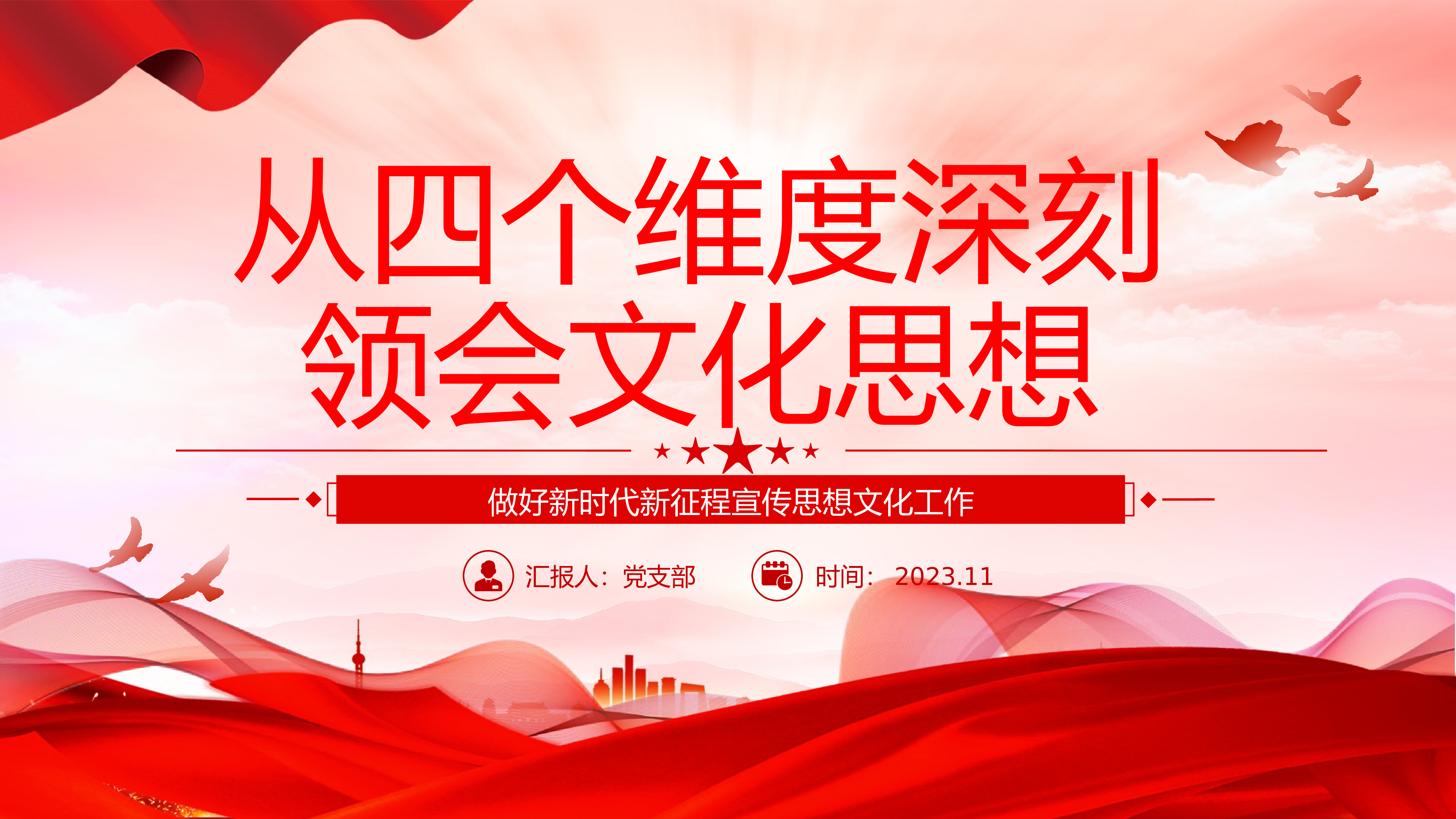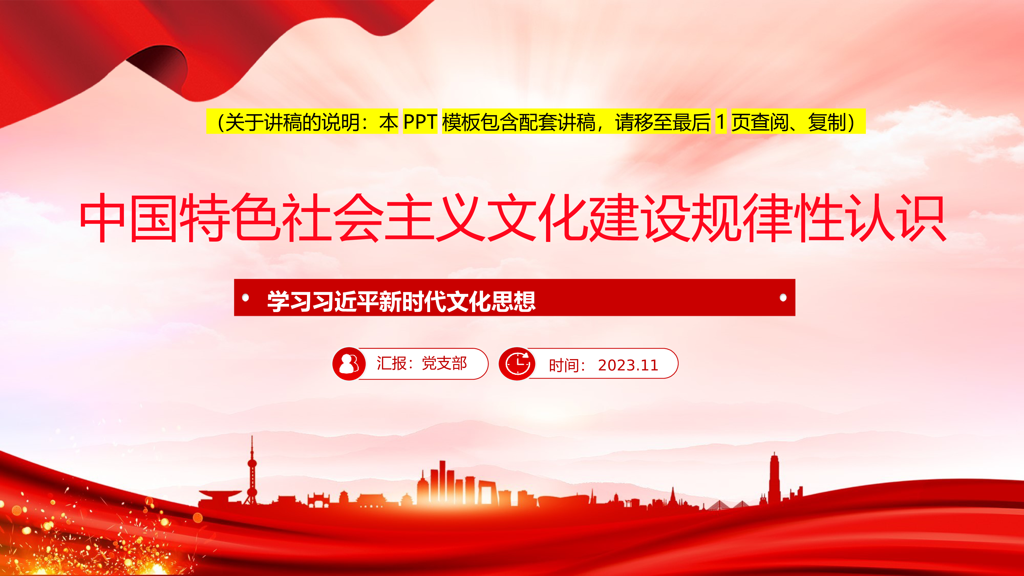 2024微党课2023推动文化传承发展的基本路径ppt模板(带内容)学习习近平文化思想党组织党员党课培训课件