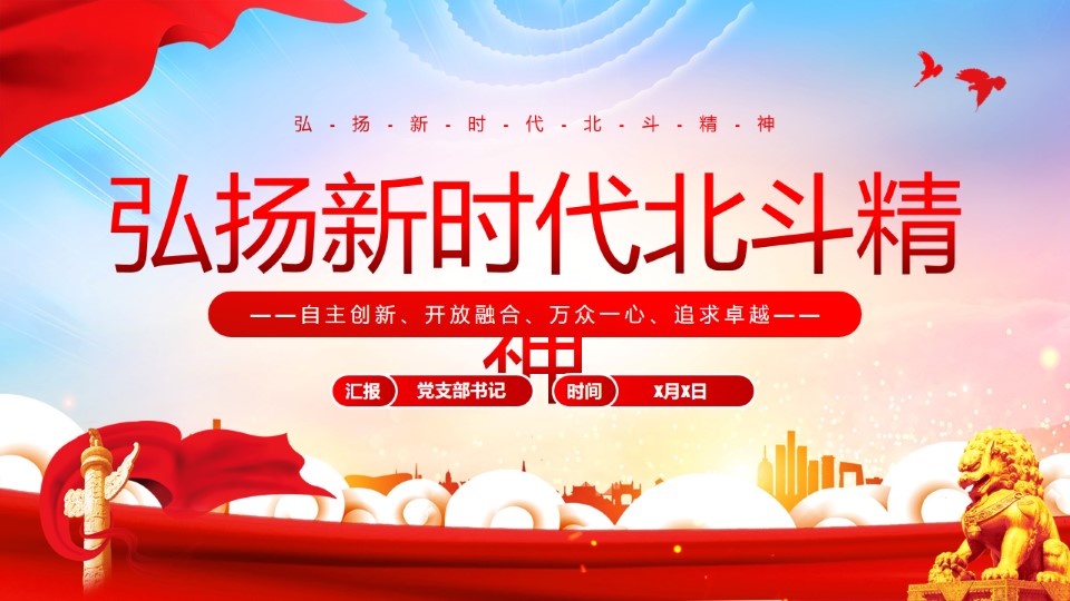 党课课件,党员干部,新时代新时代北斗精神ppt模板(带内容)党支部