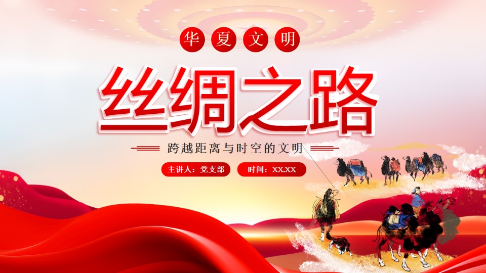 党课课件,党员干部红色华夏文明丝绸之路介绍ppt模板(带内容)党支部