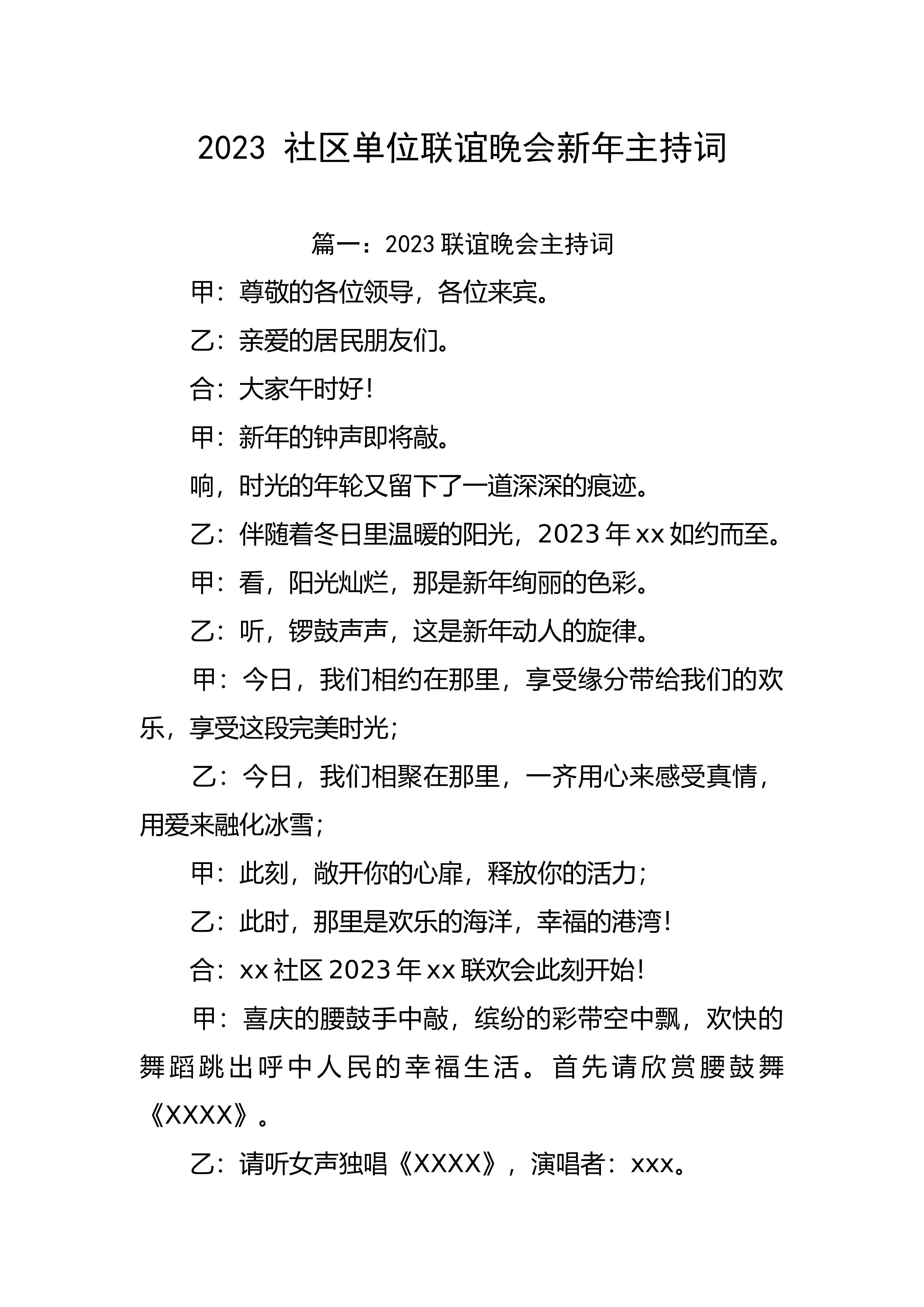 【主持词】2023 社区单位联谊晚会