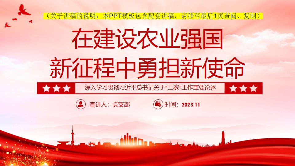 2024微党课2023在建设农业强国新征程中勇担新使命党课ppt模板(含配套讲稿)关于“三农”工作重要论述专题党课课件