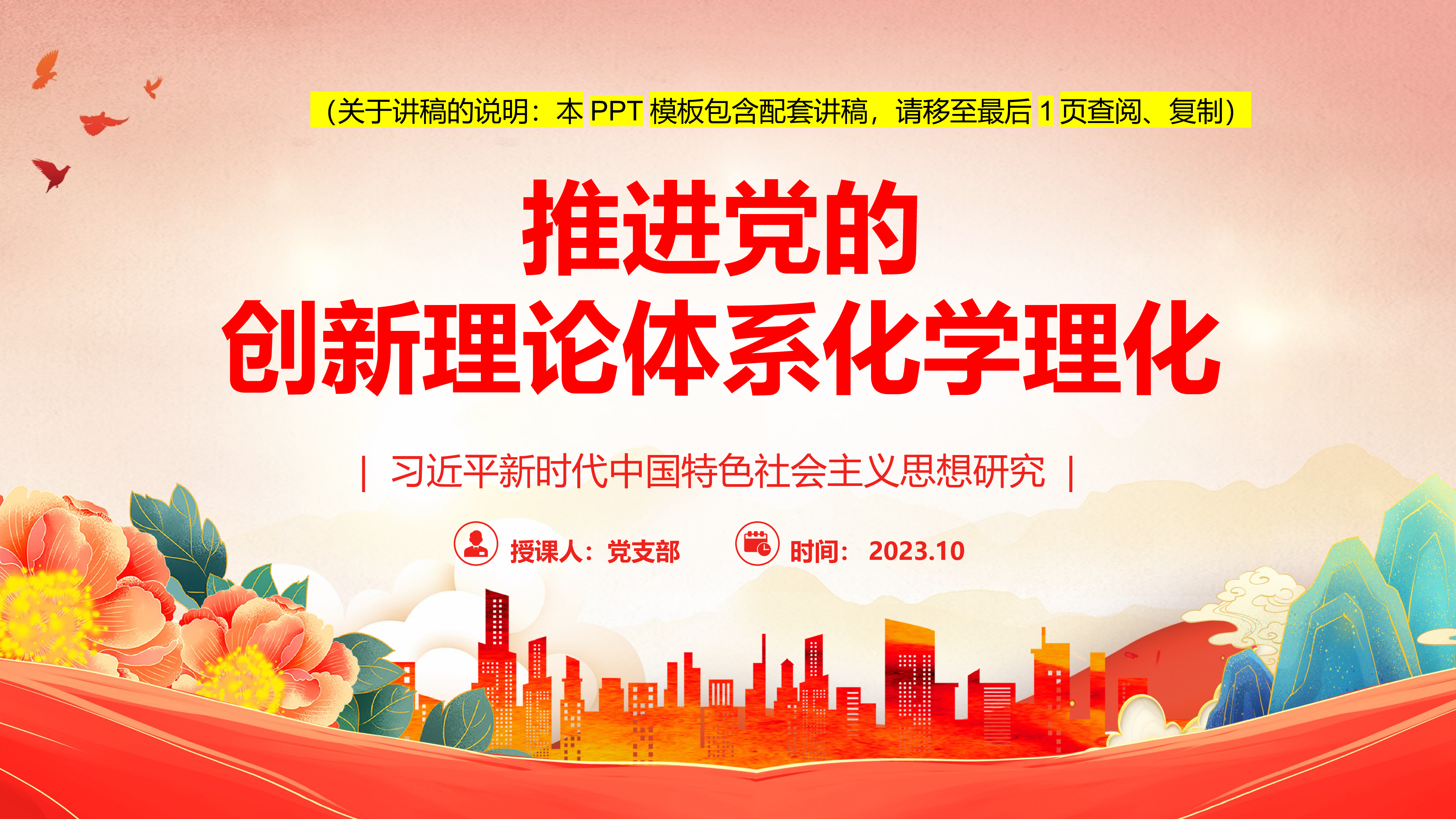 2024微党课2023党课推进党的创新理论体系化学理化ppt模板含配套讲稿习近平新时代中国特色社会主义思想研究基层党员干部学习新思想党课课件