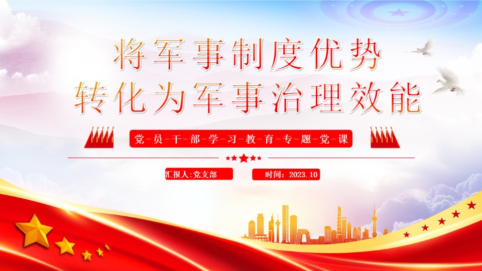 2024微党课党课ppt下载将军事制度优势转化为军事治理效能ppt模板带内容党员干部学习教育专题党课ppt模板