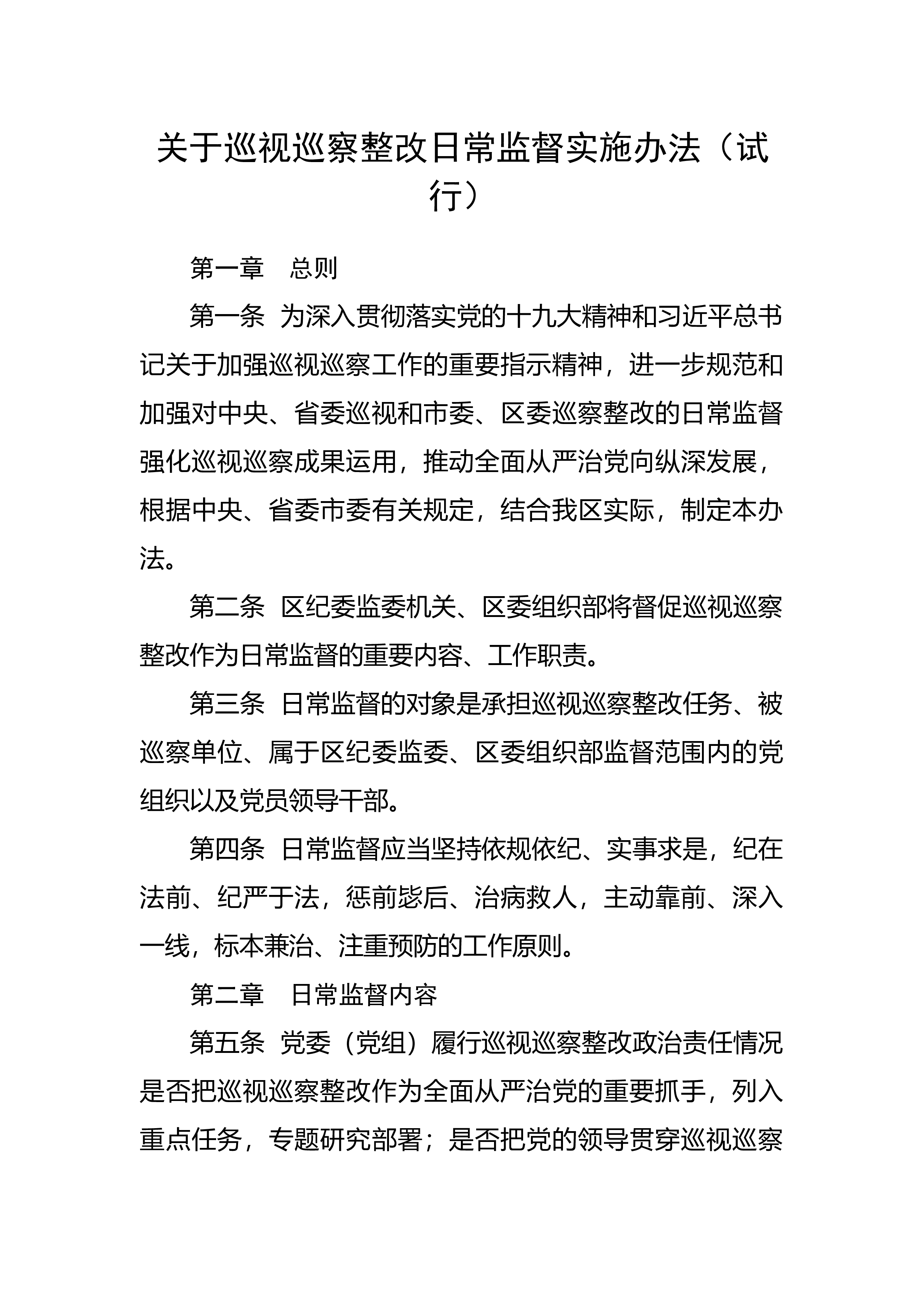 整改作为日常监督的重要内容、工作职责。第三条日常监督的对象是承担巡视