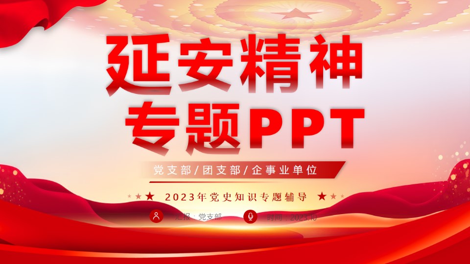 2024微党课延安精神专题党课ppt模板带内容2023年党史知识专题辅导党员干部学习教育专题党课ppt模板