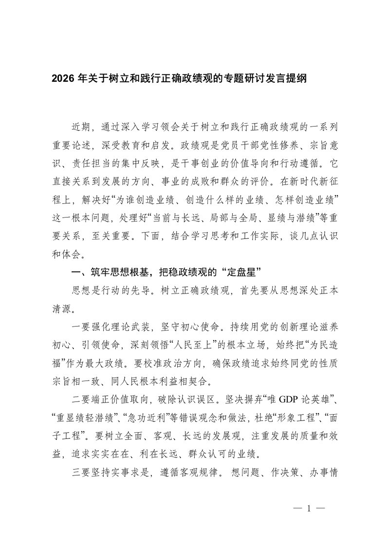 提纲,正确政绩观,发言,发言提纲,专题研讨,专题2026年关于树立和践行正确政绩观的专题