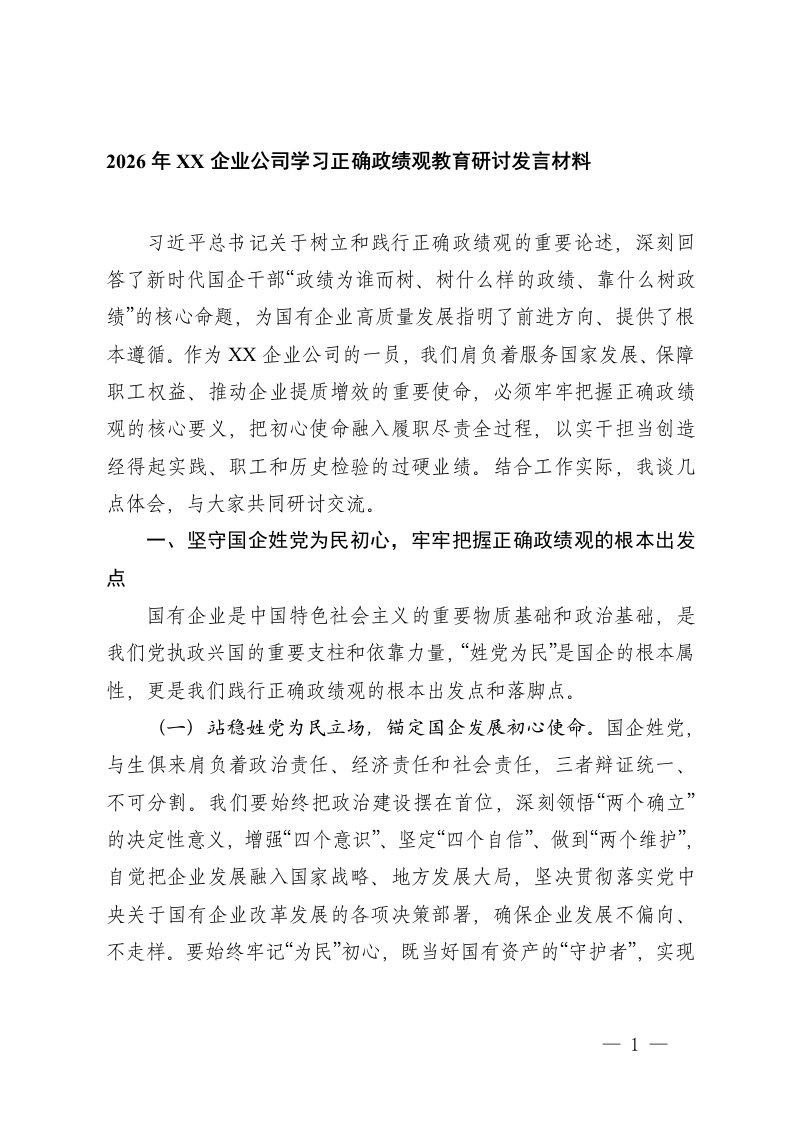 ,发言材料,正确政绩观,发言,教育,学习,材料2篇2026年XX企业公司学习正确政绩观教育