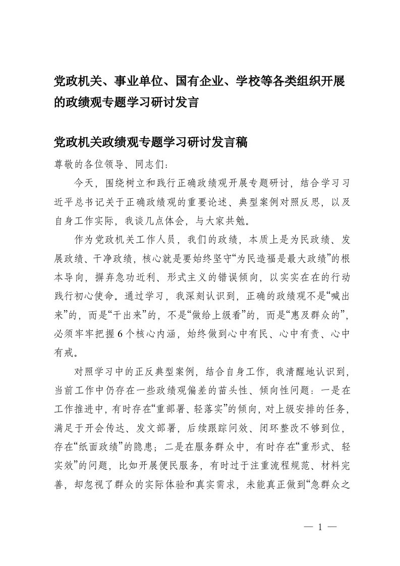 ,发言,学校,学习,机关事业单位,事业单位,党政机关,专题2026年党政机关事业单位国有企业学校等各类组织开展的政绩观专题学习