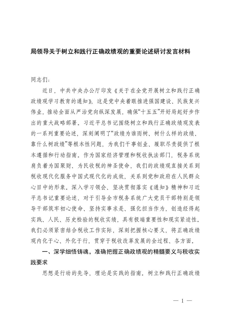 ,发言材料,正确政绩观,发言,材料3篇2026年局领导关于树立和践行正确政绩观的重要论述