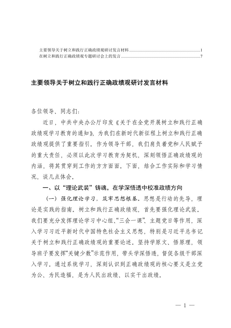 ,发言材料,正确政绩观,发言,主要领导,材料2篇2026年主要领导关于树立和践行正确政绩观