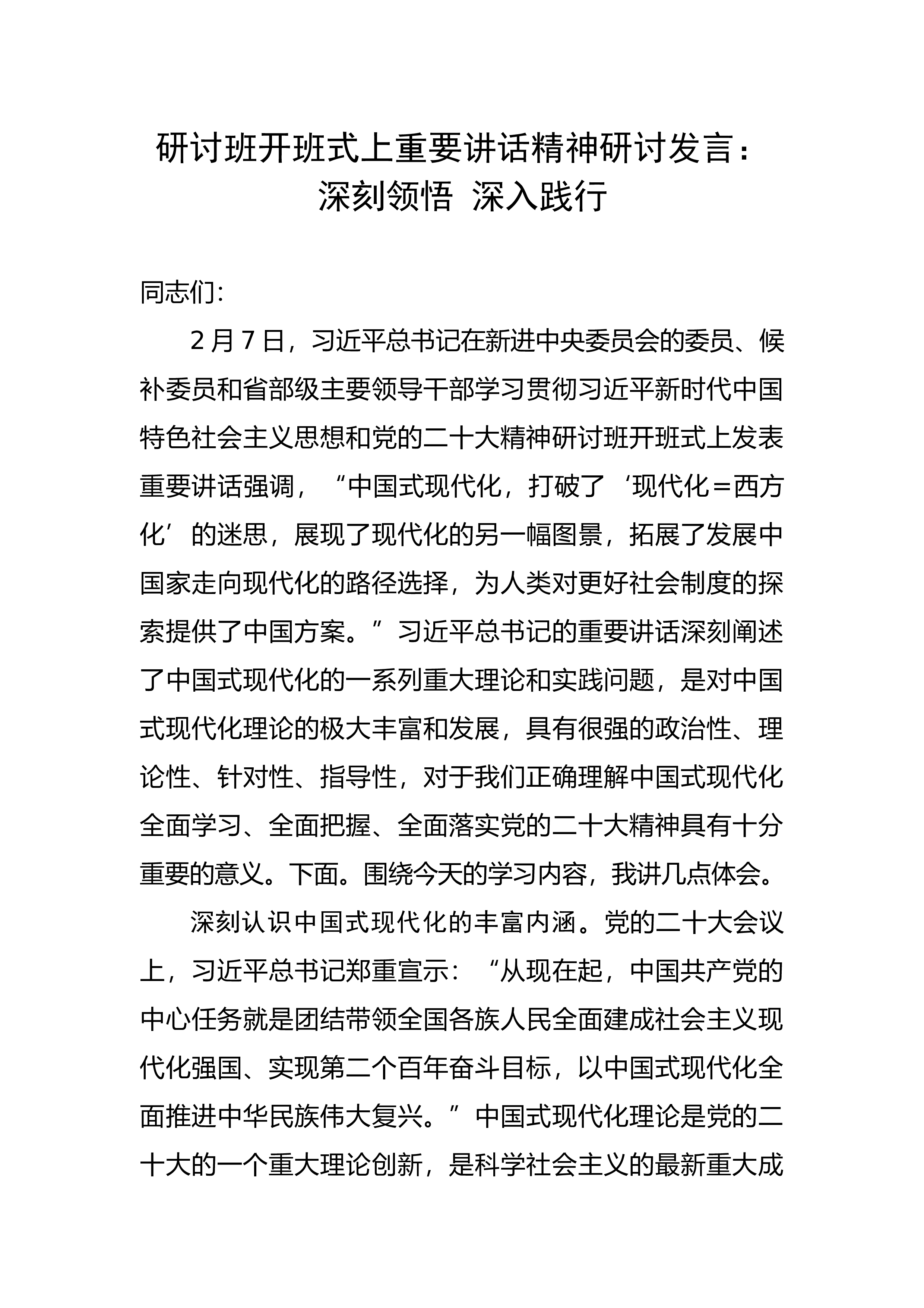 【研讨发言】党委理论学习中心组学习党的二十大精神发言材料-7篇