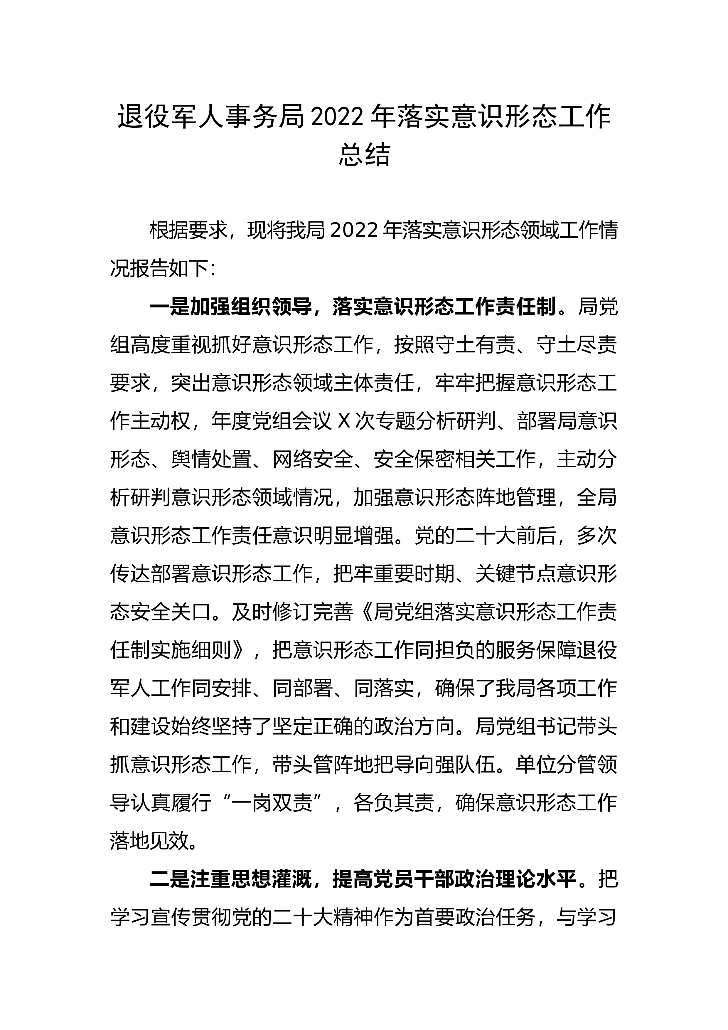 退役军人事务局2022年落实
