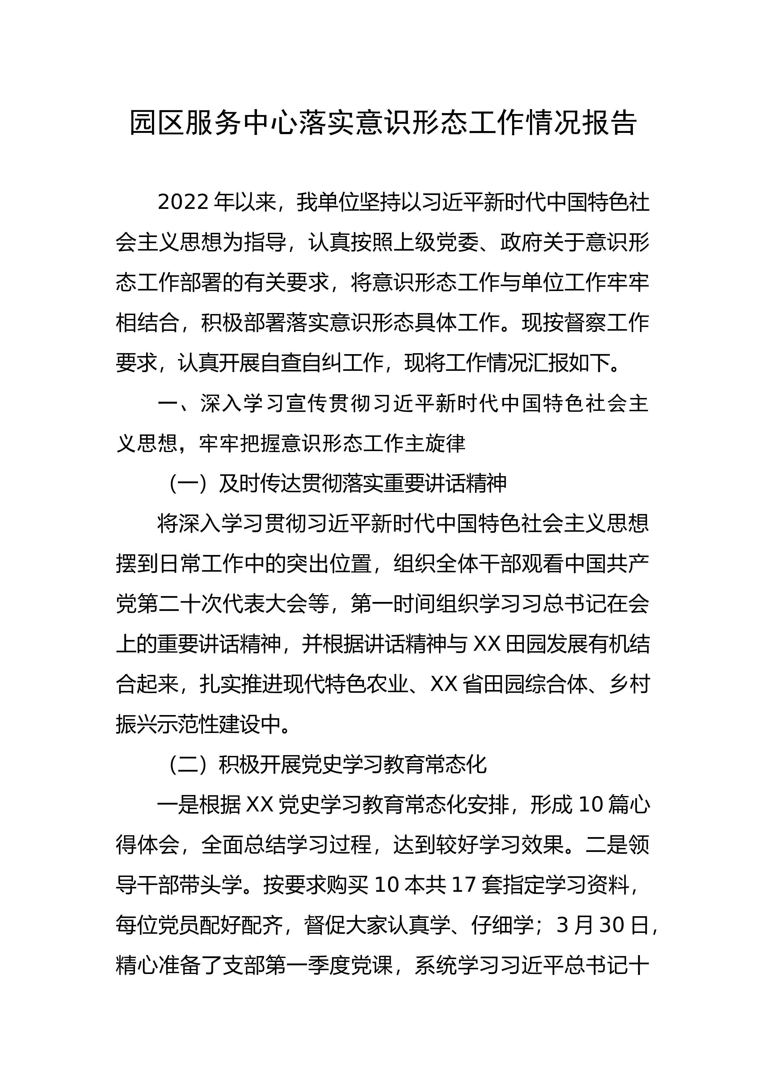 工作主旋律(一)及时传达贯彻落实重要讲话精神将深入学习贯彻习近平新时代中国特色社会主义思想摆到日常工作中的突出位置,组织全体干部观看中国共产党第二十次代表大会等,第一时间组织学习习总书记在会上的重要讲话精神,并根据讲话精神与XX田园发展有机结合...