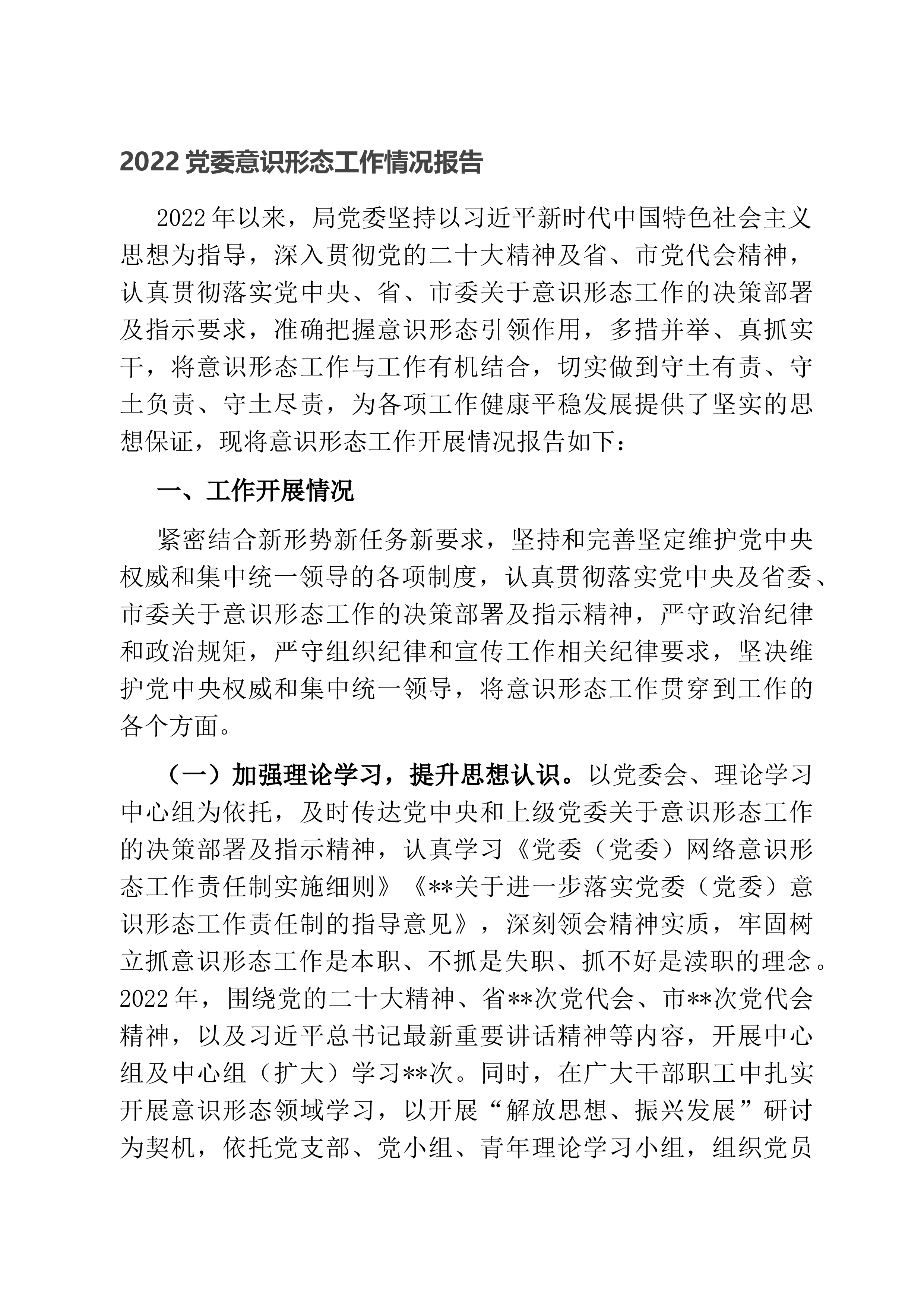 工作情况报告2022年以来,局党委坚持以习近平新时代中国特色社会主义思想为指导,深入贯彻党的二十大精神及省、市党代会精神,认真贯彻落实党中央、省、市委关于
