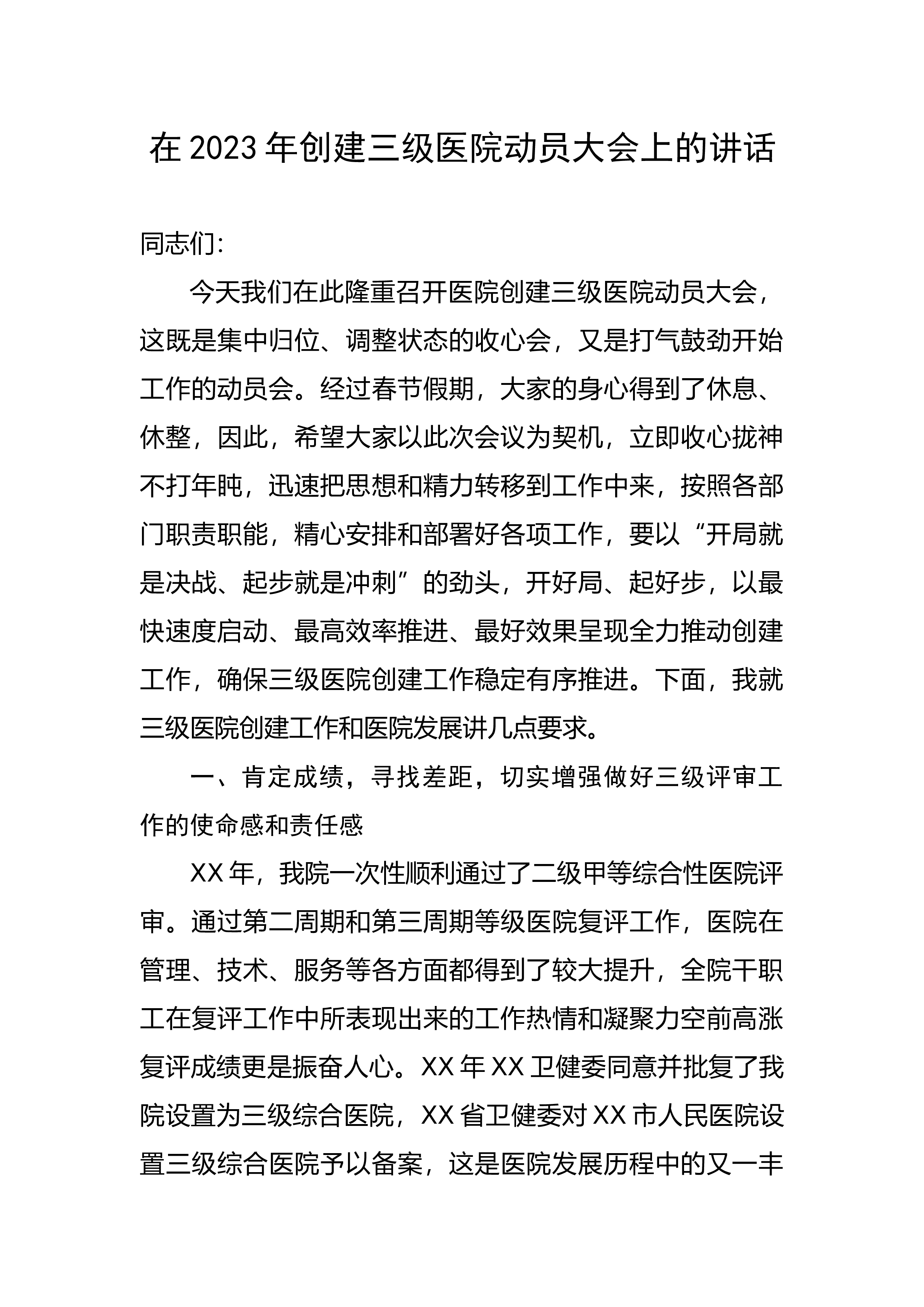 【讲话致辞】在2023年创建三级