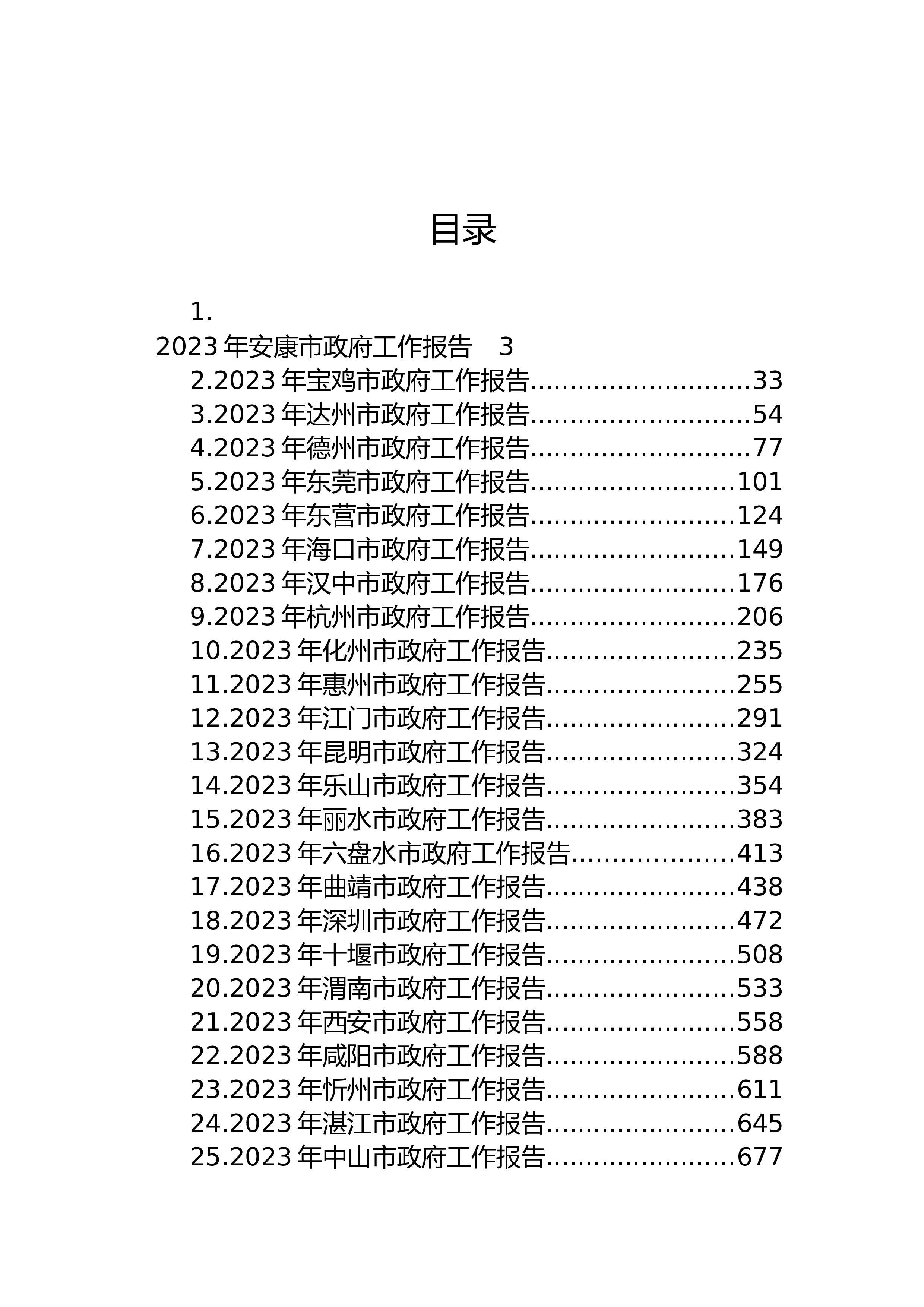 目录1.2023年安康市政府工作报告32.2023年宝鸡市政府工作报告............................333.2023年达州市政府工作报告............................544.2023年德州市政府工作报告............................775.2023年东莞市政府工作报告..........................1016.2023年东营市政府工作报告..........................1247.2023年海口市政府工作报告..........................1498.2023年汉...
