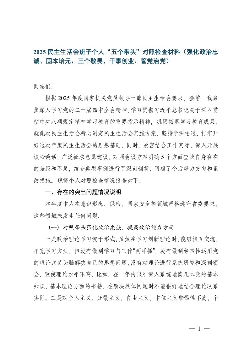 思想,民主生活会,对照检查,发言材料,五个带头,忠诚,发言,责任,生活,奋发有为,材料2025年民主生活会五个带头对照检查发言材料筑牢忠诚夯实思想恪守立场奋发有为压实责任 (1)思想,民主生活会,对照检查,发言材料,五个带头,忠诚,发言,责任,生活,奋发有为,材料2025年民主生活会五个带头对照检查发言材料筑牢忠诚夯实思想恪守立场奋发有为压实责任 (1)
