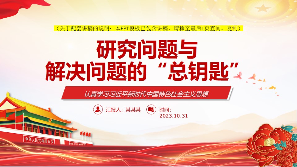 2024微党课2023党课课件研究问题与解决问题的“总钥匙”ppt模板(含配套讲稿)认真学习习近平新时代中国特色社会主义思想党员教育