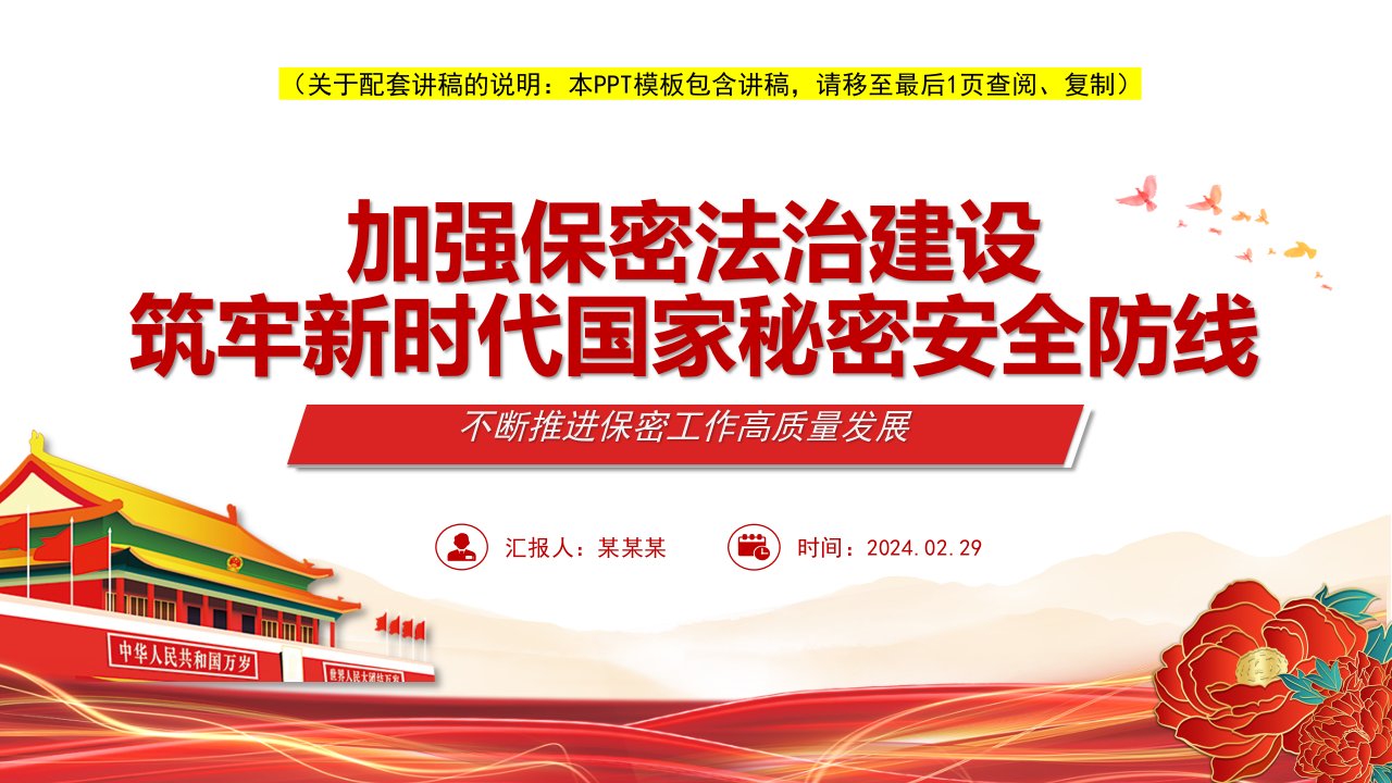 2024加强保密法治建设筑牢国家安全防线党课ppt模板(含配套讲稿)不断推进保密工作高质量发展