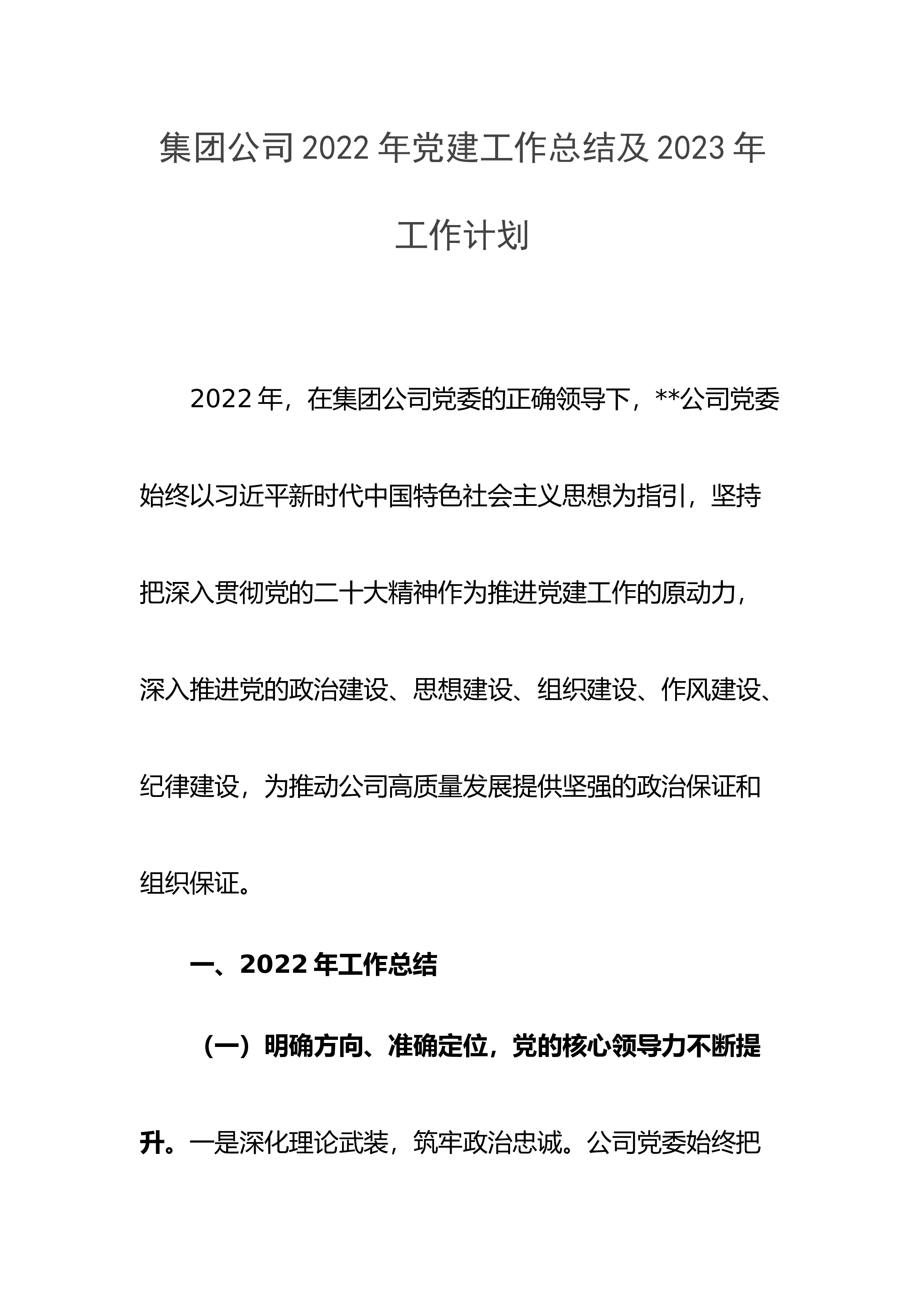 【国资国企】集团公司2022年党建工作总结及2023年工作计划