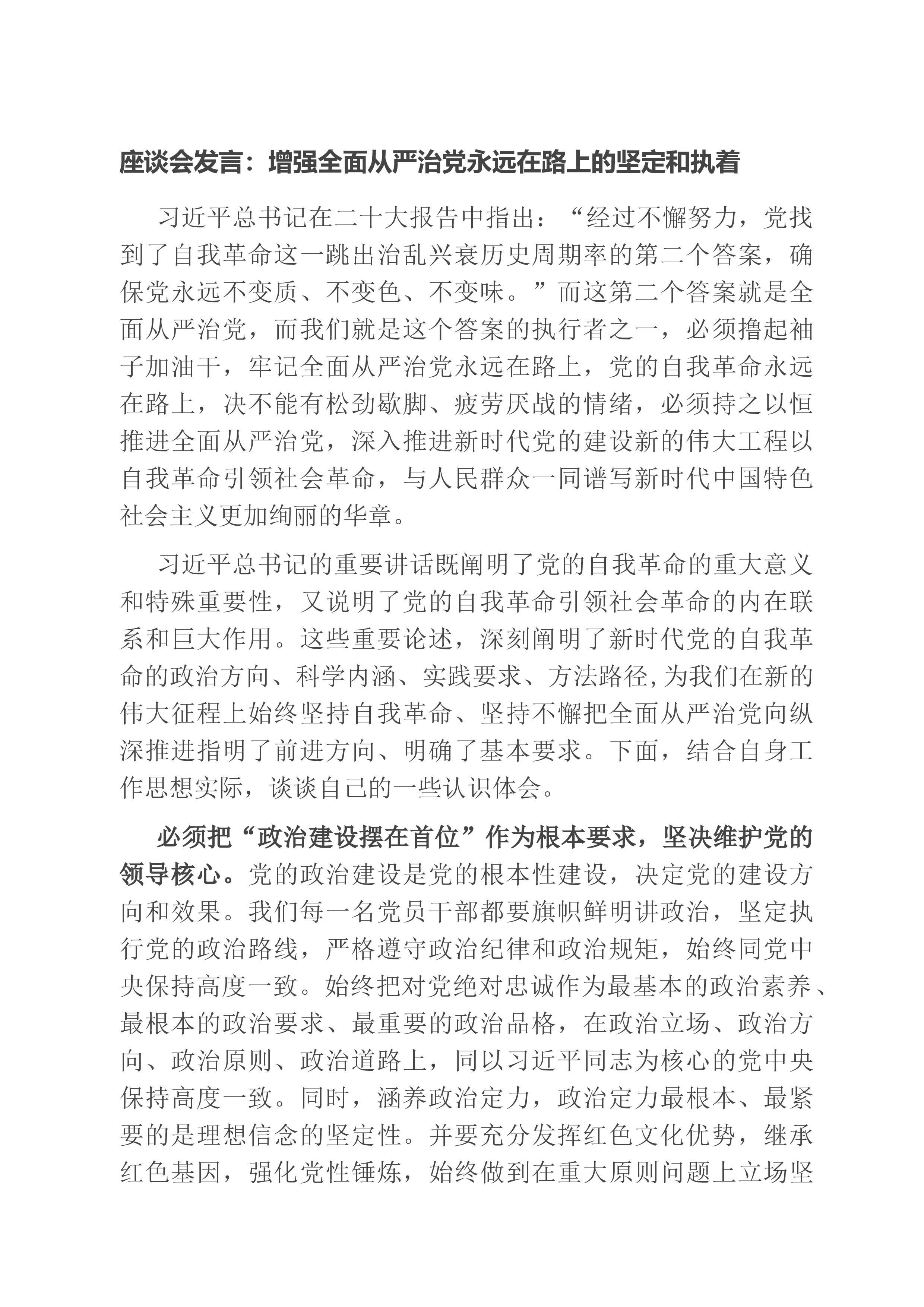 在国有企业思政课工作座谈会上的发言各位领导,同志们:X集团党委始终坚持“抓生产从思想入手,抓思想从生产出发”,以“四力驱动”推进思政工作守正创新,探索职工利益和发展、企业战略和愿景有机融合的一线思想政治工作法,推动构建职工和企业结成利益共同体、责任共同体、命运共同体,实现企业核心竞争力、企业凝聚力、社会影响力全面提升。一、凝聚发展合力突出“三个教育”新使命X集团党委坚持把思政教育与改革发展深度融合,教育引导广大党员筑牢信仰之基、补足精神之钙、把稳思想之舵。政治理论教育是基础。明确“集中式”“研讨式”“下沉式”学习模式,推动政治理论教育与国企改革、制度执行、实践解忧、指导一线相结合,组织专题研学...