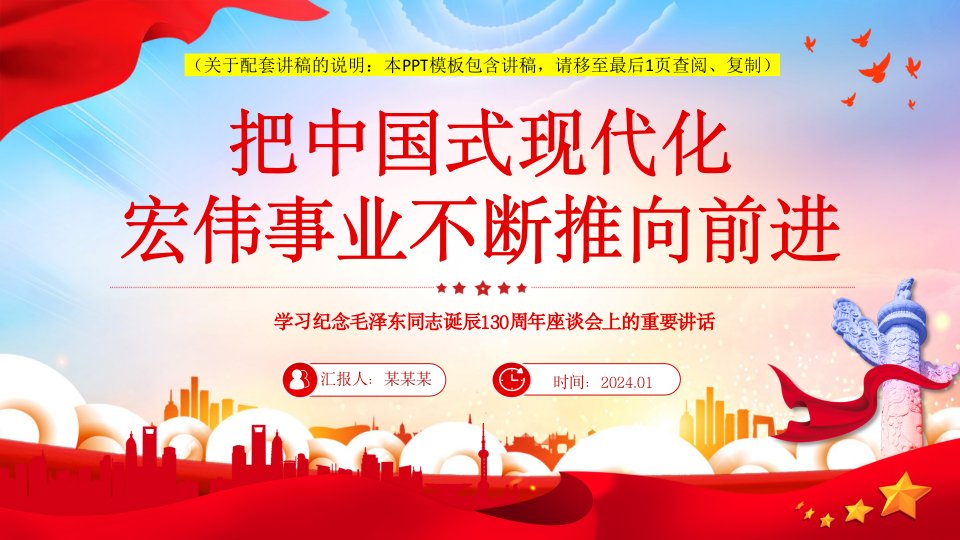 坚定不移推进2024中国式现代化宏伟事业ppt模板(含配套讲稿)纪念毛泽东同志诞辰130周年座谈会上的重要讲话课件