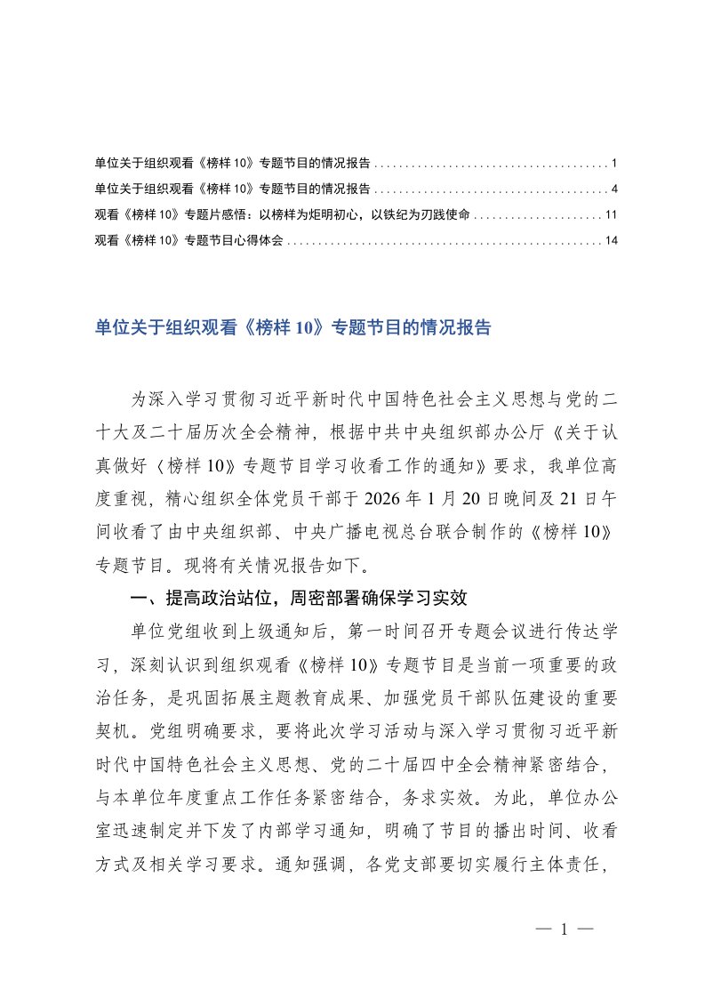 ,情况报告,心得体会,报告,专题2026年观看