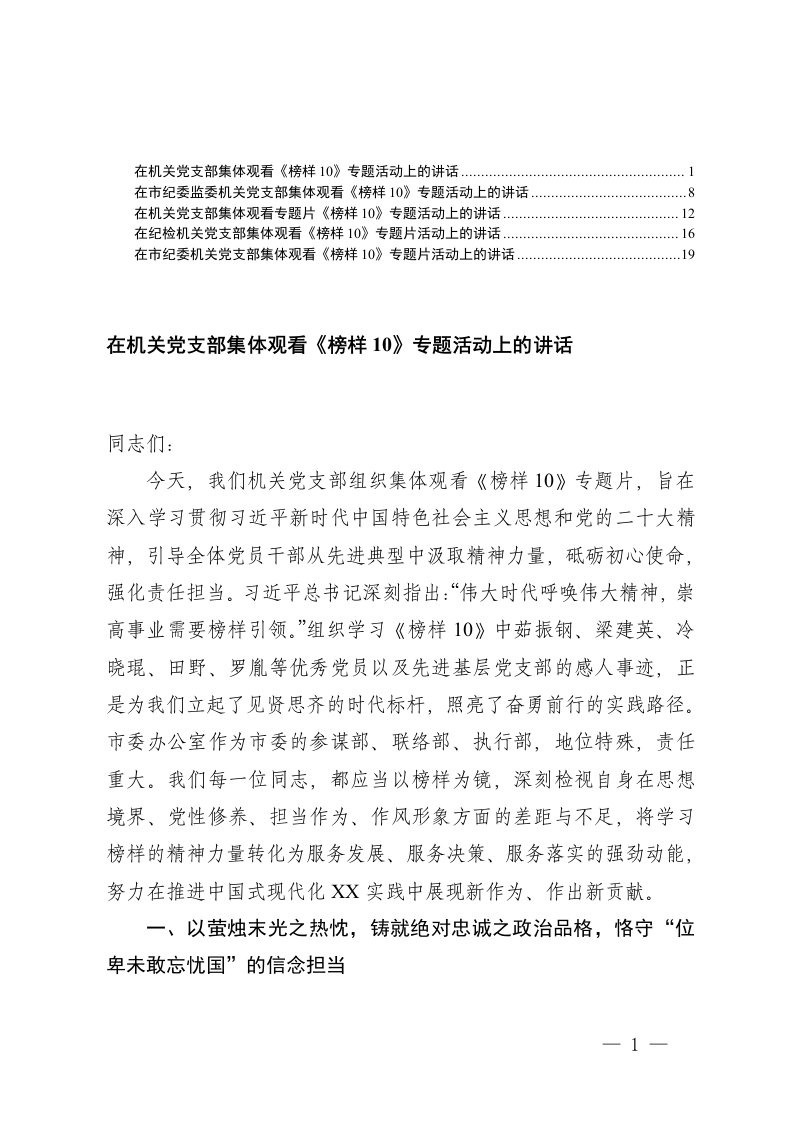 ,党支部,讲话,专题5篇在市纪委机关党支部集体观看