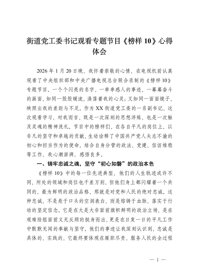 ,心得体会,专题街道党工委书记观看专题节目