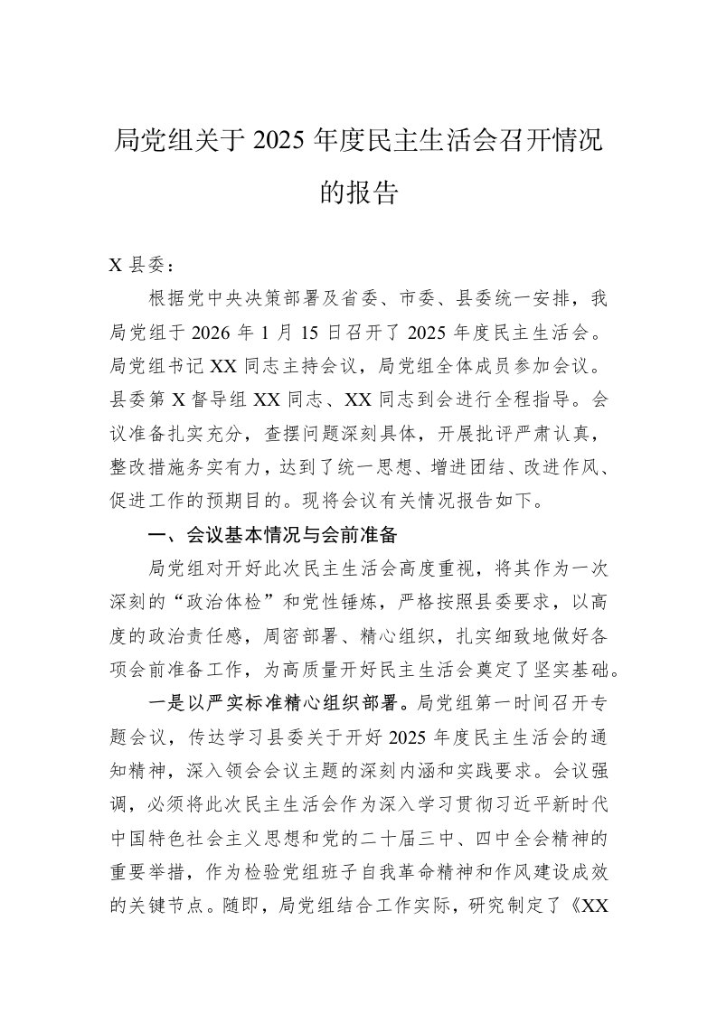 ,党组,生活,汇编汇编关于党组2025-2026年度民主生活会召开情况的