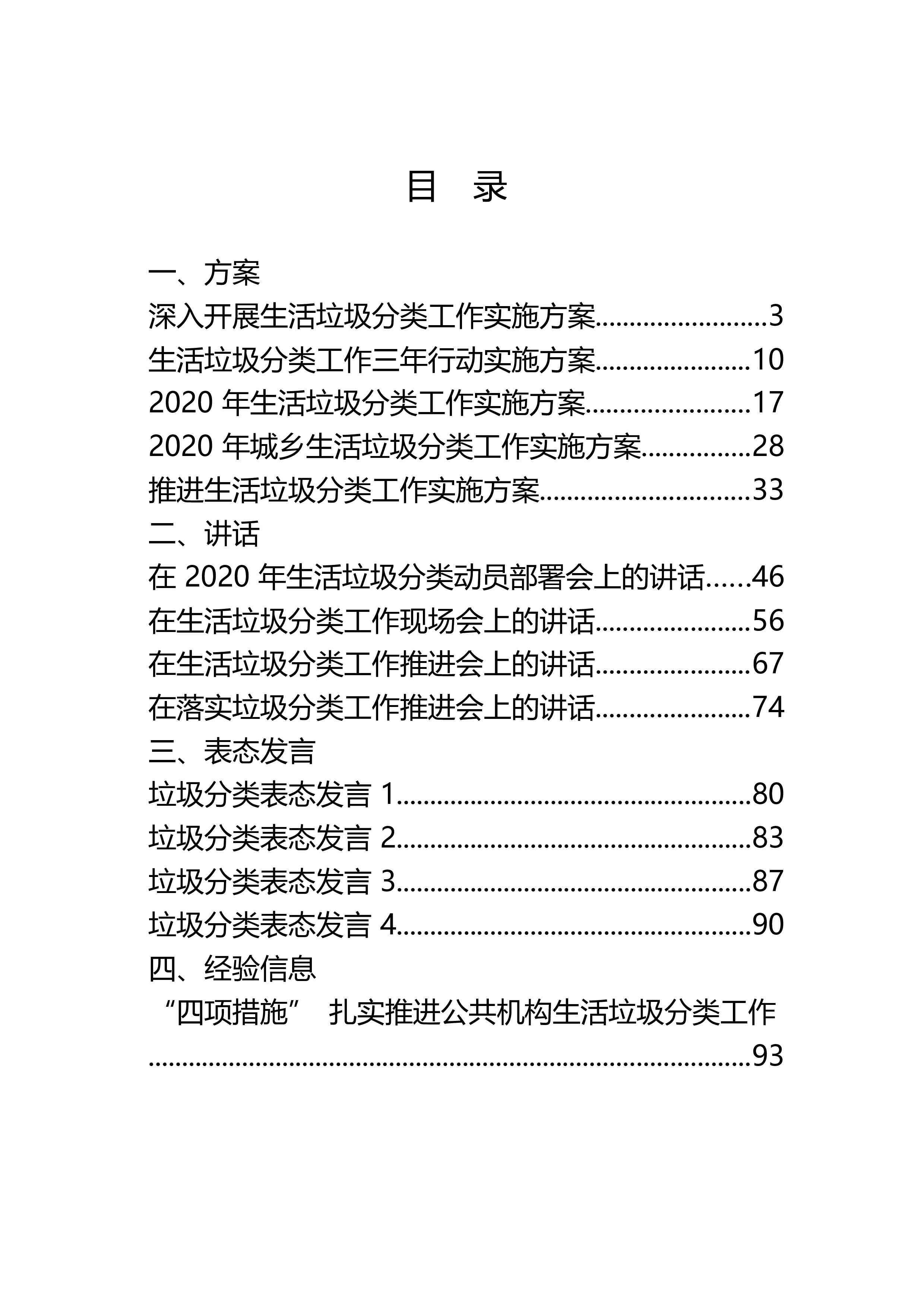 【写作素材】垃圾分类方案、讲话、表态发言、经验信息、工作报告、倡议书、承诺书、宣传标语等-30篇