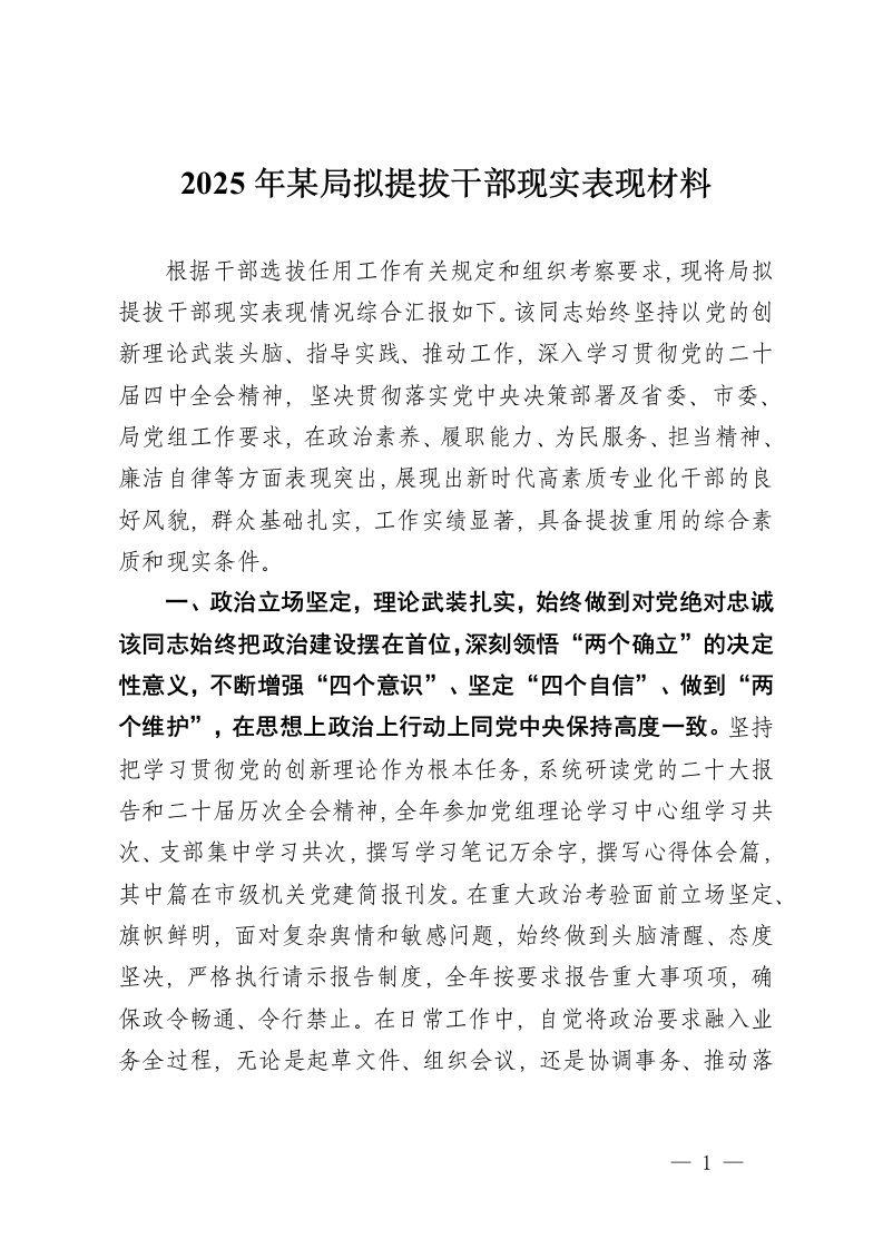 2025年某局拟提拔干部现实表现
