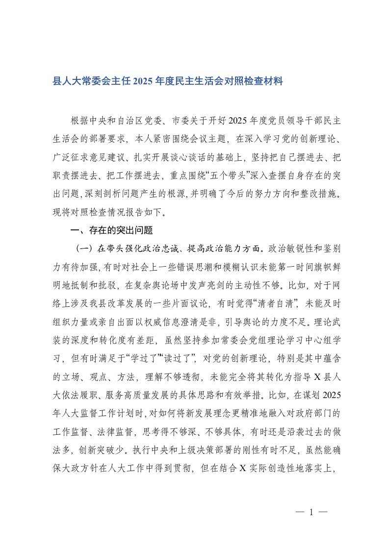 通用2025年度民主生活会对照检查