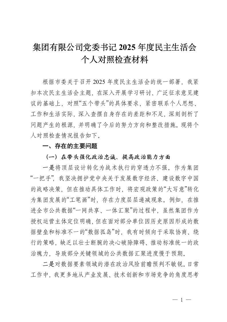 集团有限公司党委书记2025年度民主生活会个人对照检查