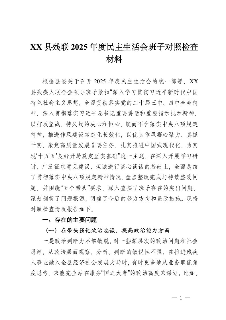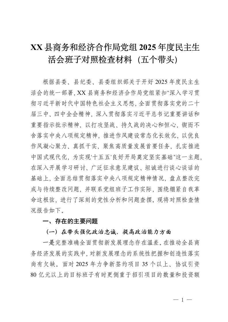 县商务和经济合作局党组2025年度民主生活会班子对照检查