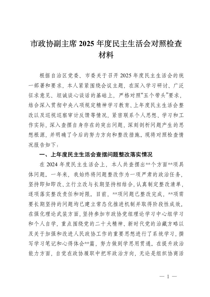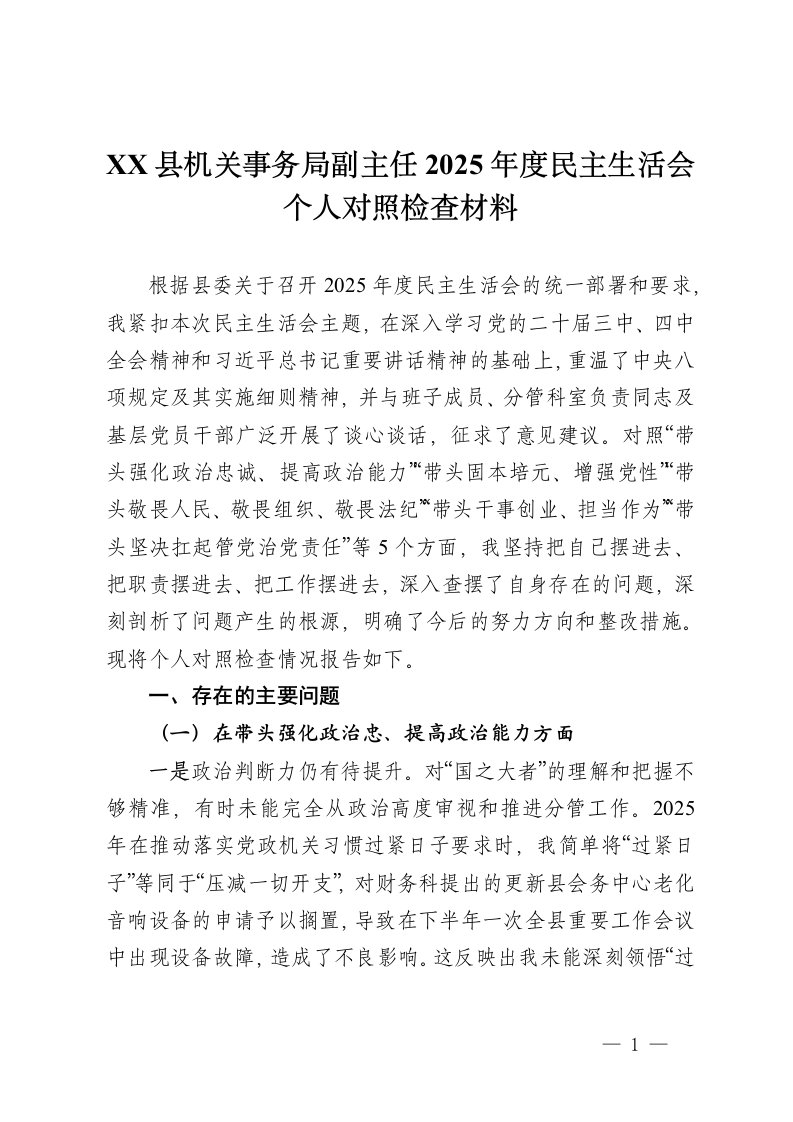 县机关事务局副主任2025年度民主生活会个人对照检查